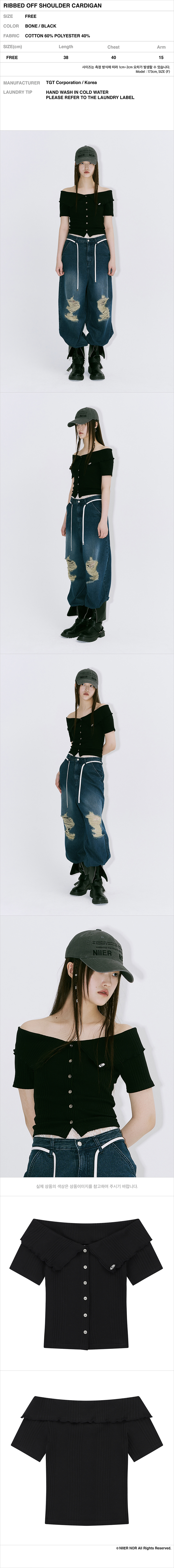 니어노어 립드 오프숄더 가디건 블랙