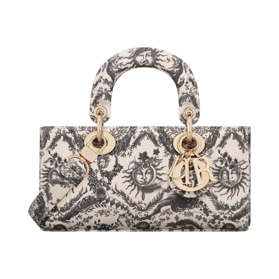 Dior Small Lady D-Joy Bag White Black Soleil Printed Denim