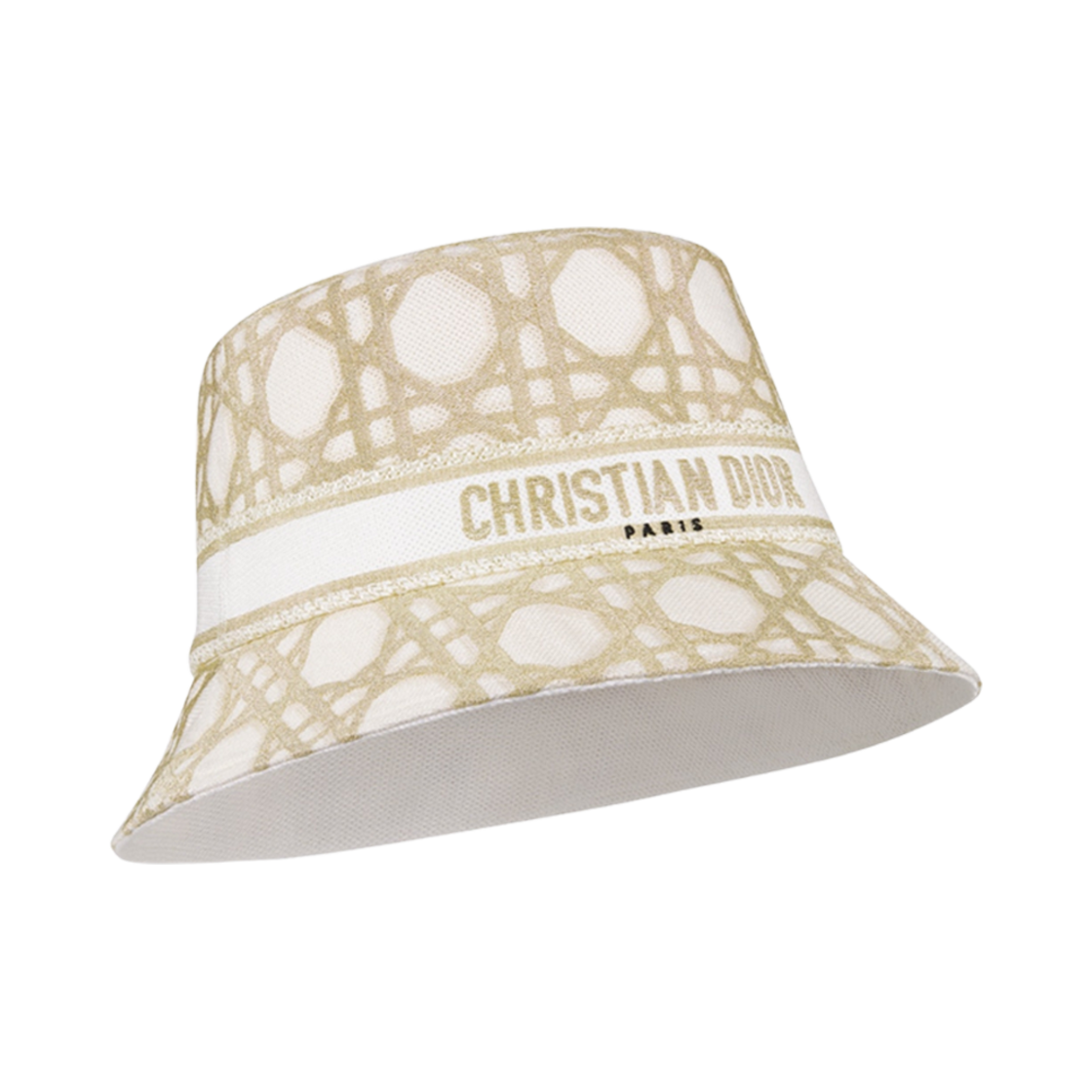(W) Dior Or D-Bobby Macrocannage Small Brim Bucket Hat White Gold Tone