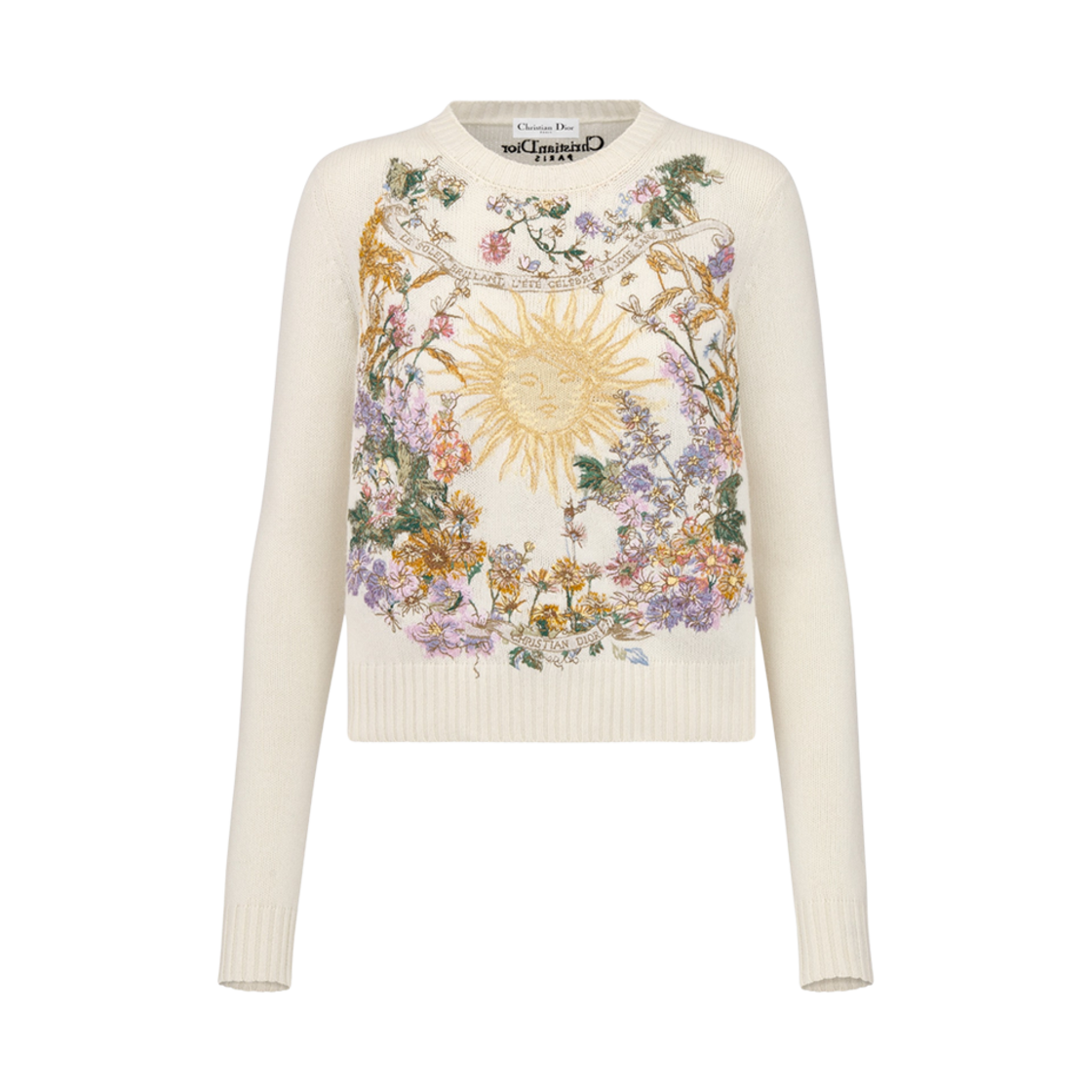 (W) Dior Embroidered Sweater White Cashmere Knit Multicolor 4 Saisons Ete Motif