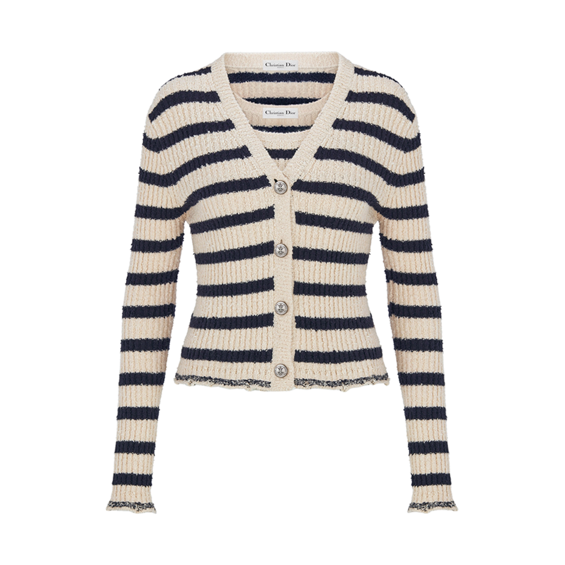 (W) Dior Mariniere Twinset White Navy Blue Knit