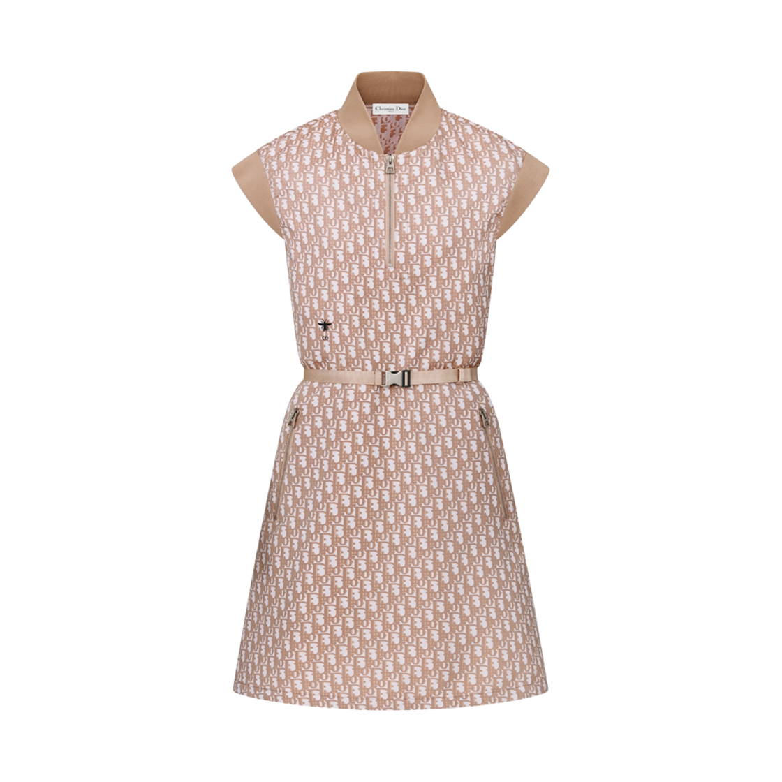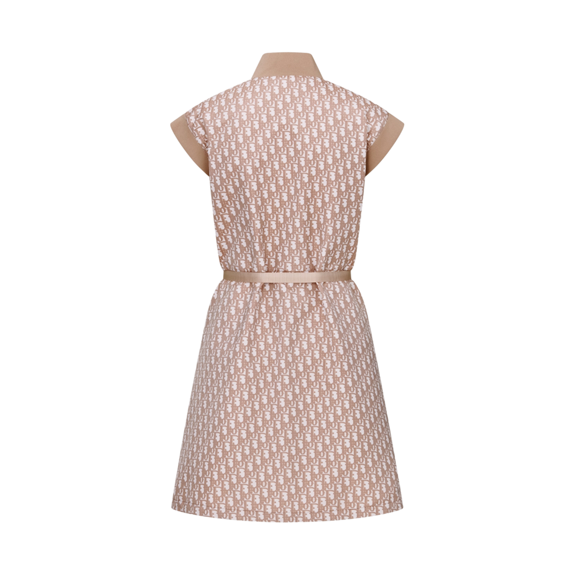 (W) Dior Belted Dress Melocoton Pink Technical Taffeta Jacquard Oblique Motif