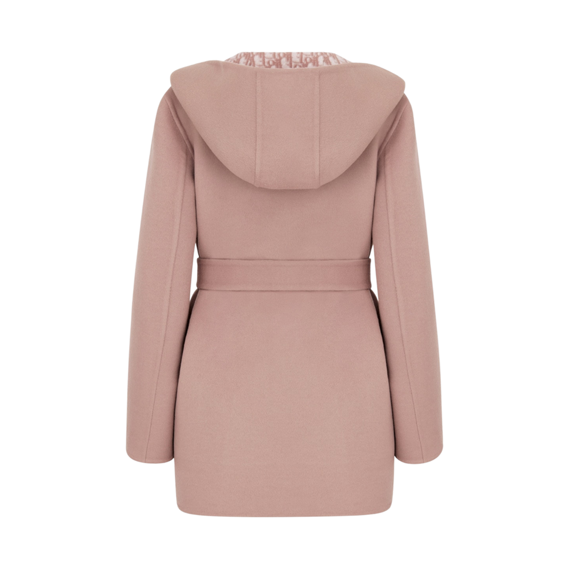 (W) Dior Cropped Coat With Hood And Belt Roses Vents Double Sided Wool