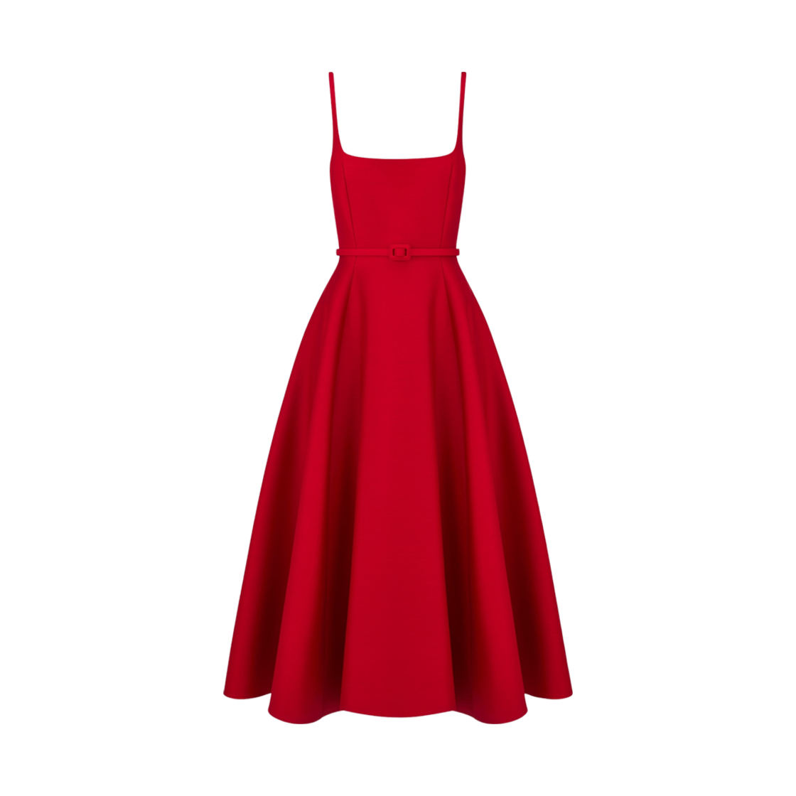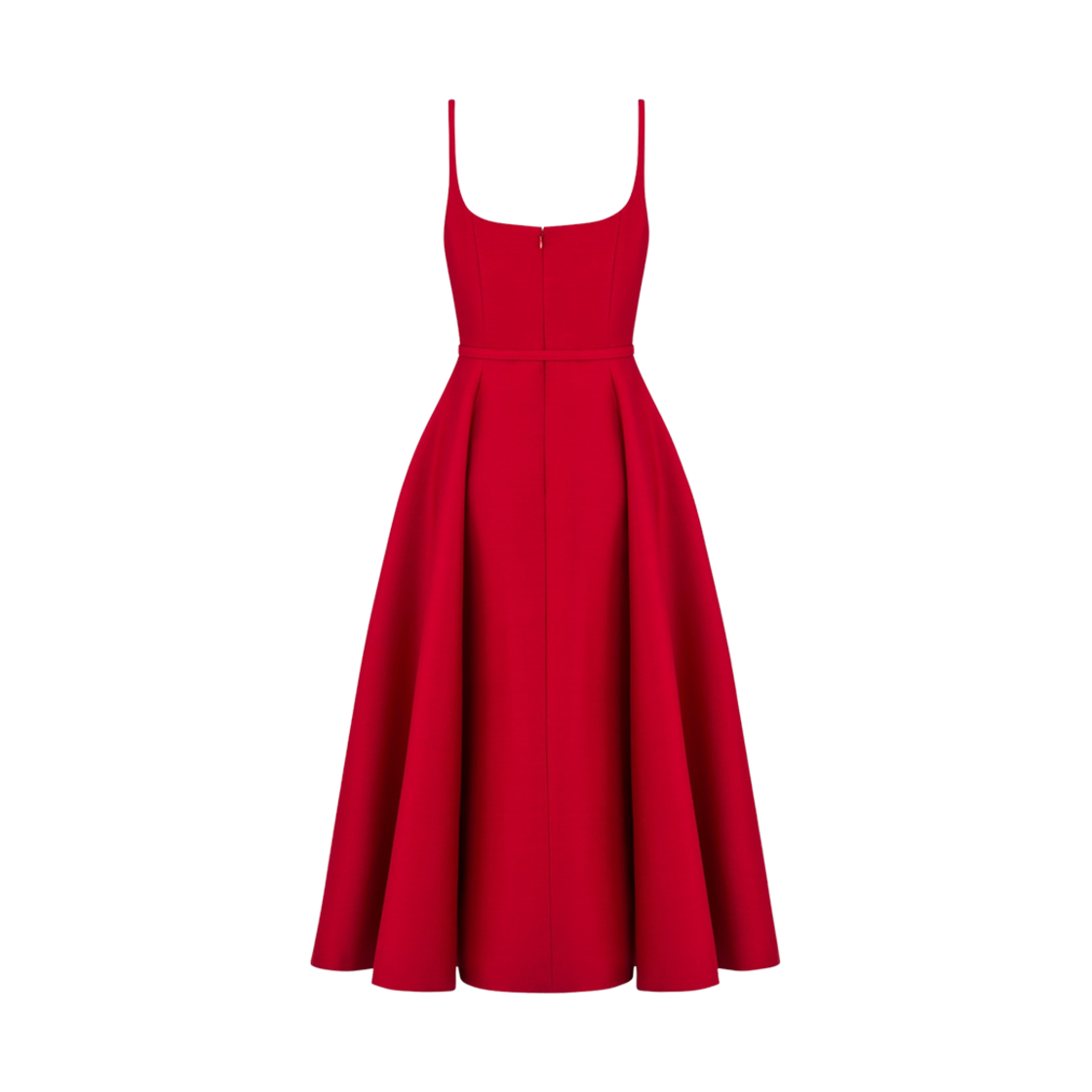 (W) Dior Flared Mid-Length Dress Red Wool Silk Shantung