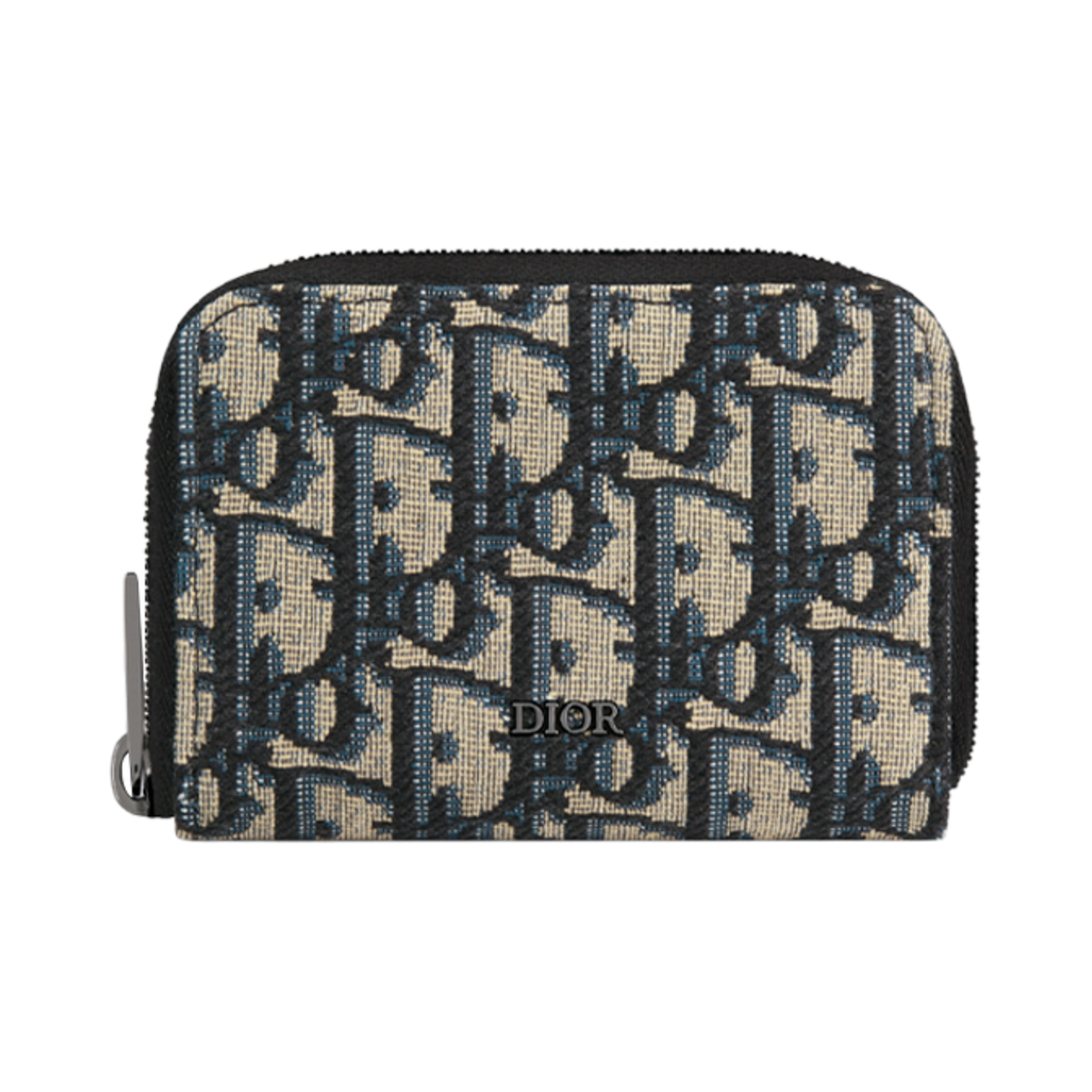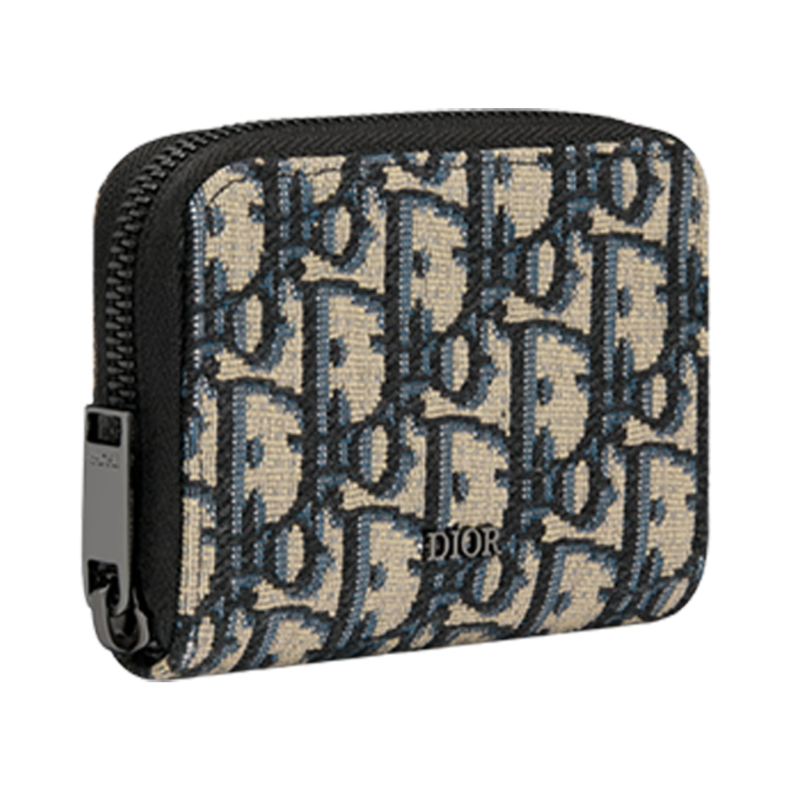 디올 지퍼 카드 홀더 베이지 블랙 오블리크 자카드