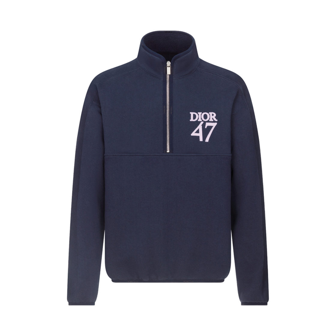 디올 레귤러핏 플리스 스웨터 스탠드 칼라 네이비 블루