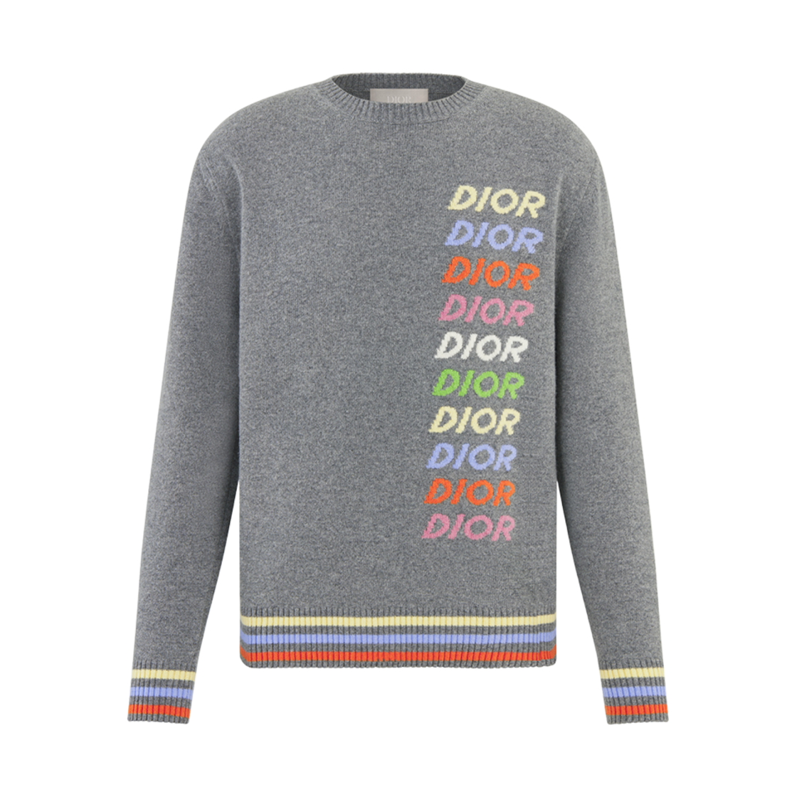 디올 스웨터 그레이 울 캐시미어 인타르시아