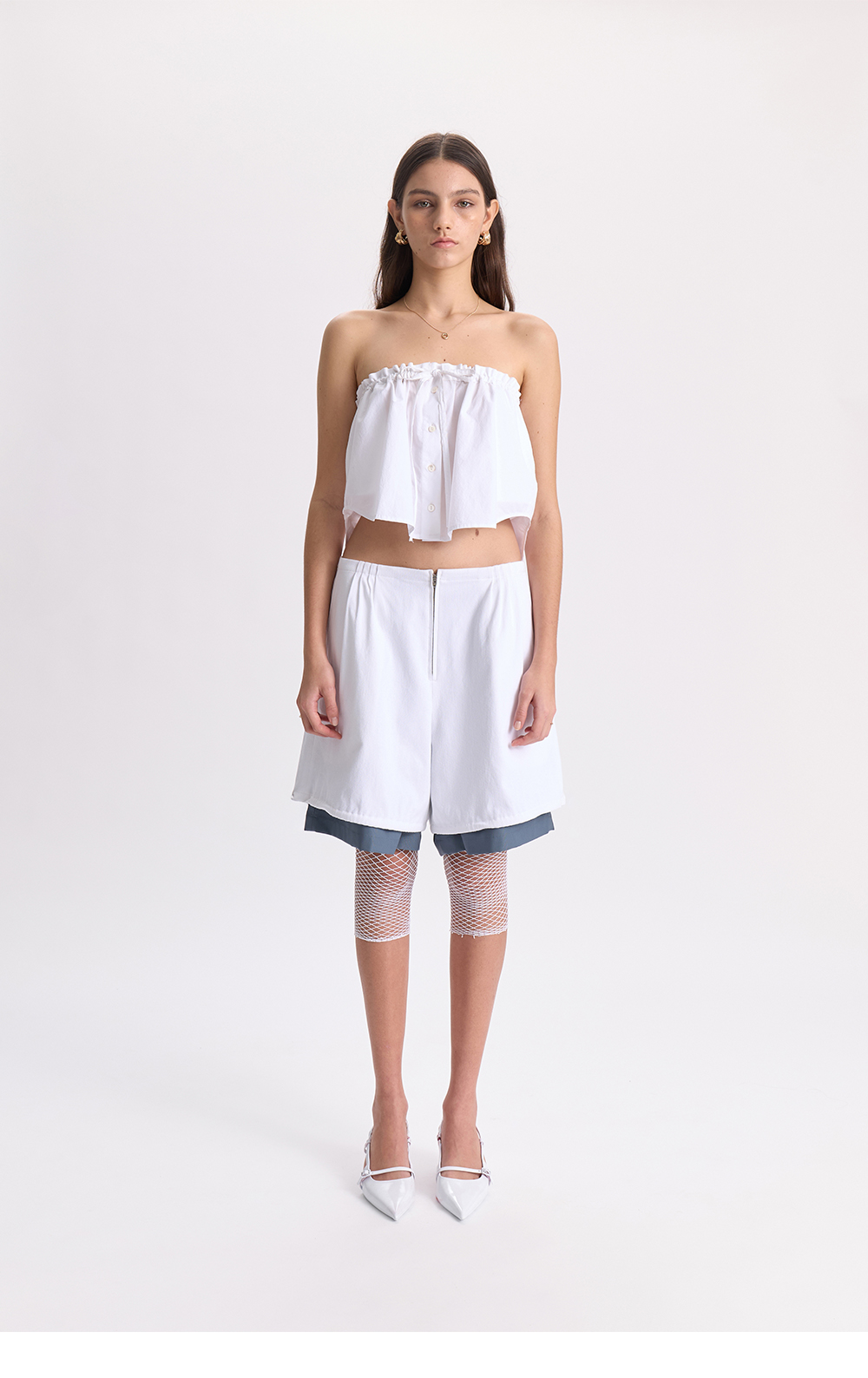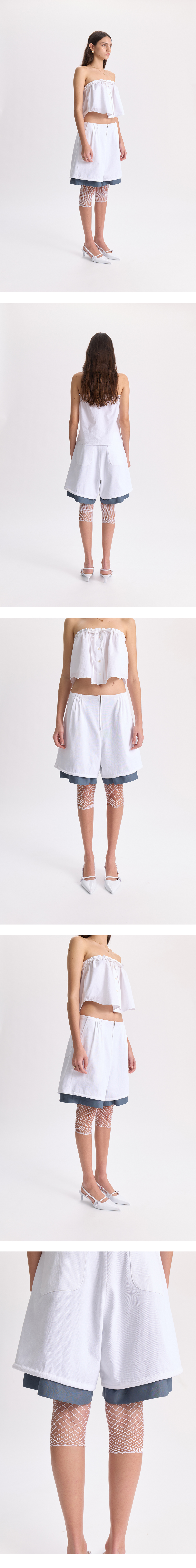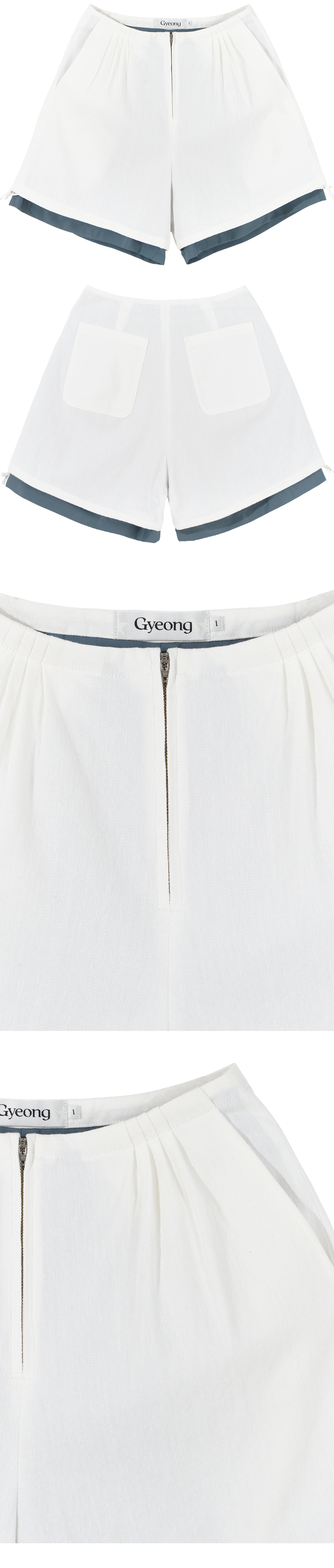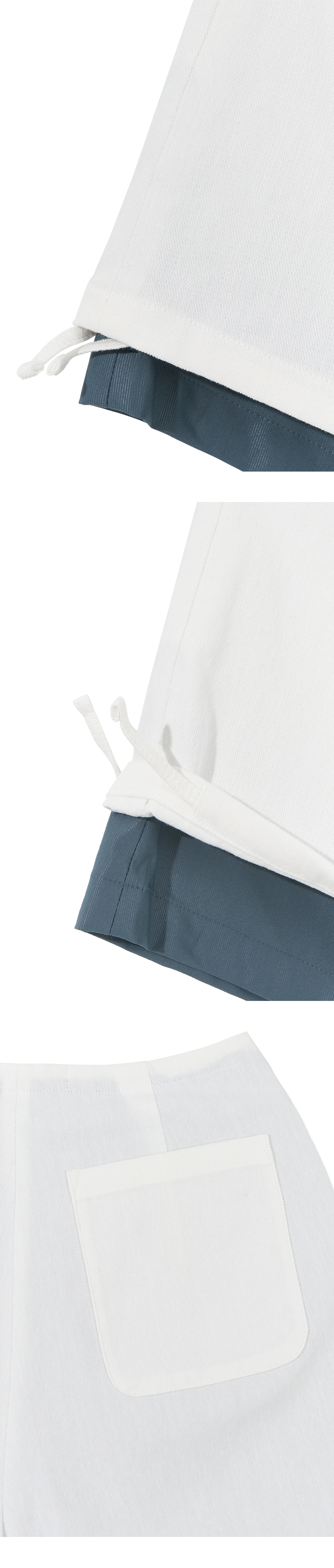 - 전체 안감이 레이어드된 형태의 쇼츠 <br><br> - 상단 턱 디테일<br> - 밑단 끈 디테일로 다양한 연출 가능<br> - 전면 2개의 포켓<br> - 후면 2개의 포켓<br> - 편안한 착용감의 레귤러핏의 실루엣<br><br> * Shell : 100% Cotton<br> * Lining : 61% Polyseter 35% Bamboo 4% Polyurethane<br><br> * Made in Korea<br><br> * Model - 175cm / 64kg / 2 Size<br>