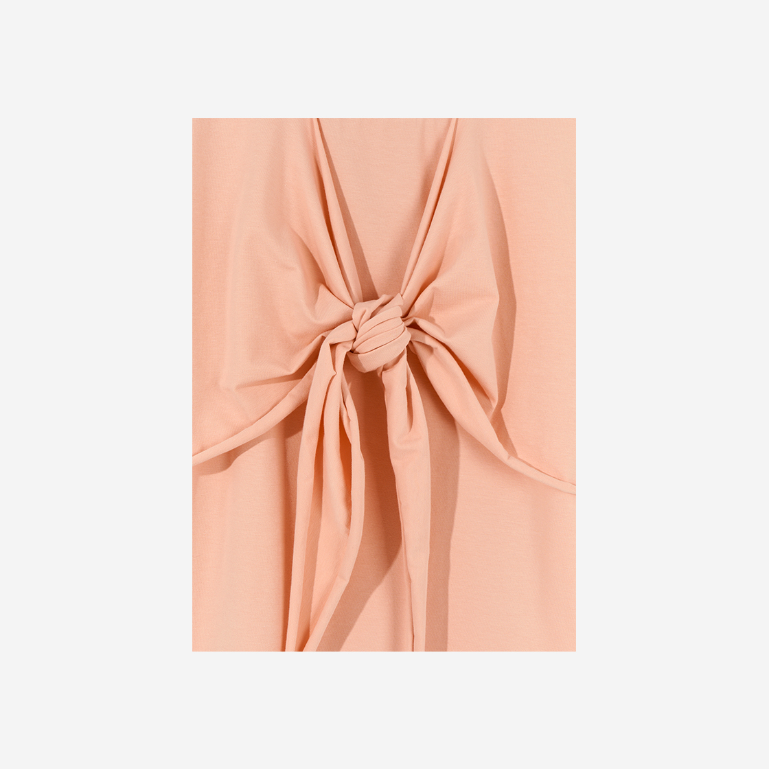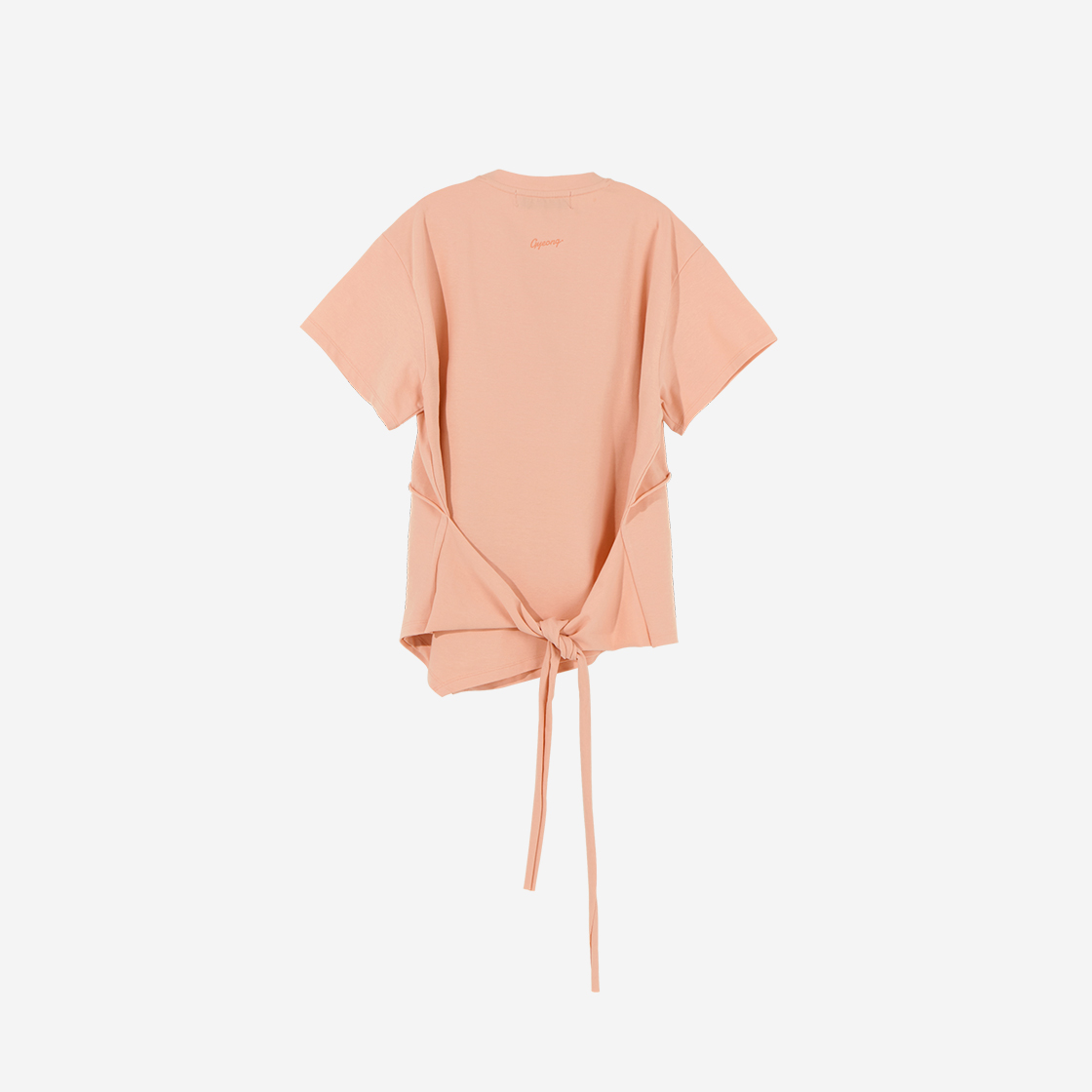 - 레이어드 디테일의 레귤러 핏 티셔츠<br><br> - 밑단 끈 형태의 원단으로 앞/뒤 연출 가능<br> - 밑단 비대칭 디테일<br> - 부드러운 터치감과 좋은 신축성<br> - 착용하는 정도의 따라 다양한 실루엣 연출 가능<br><br> * Shell : 95% Cotton 5% Span<br> * Made in Korea<br><br> * Model - 176cm / 58kg / One Size<br>