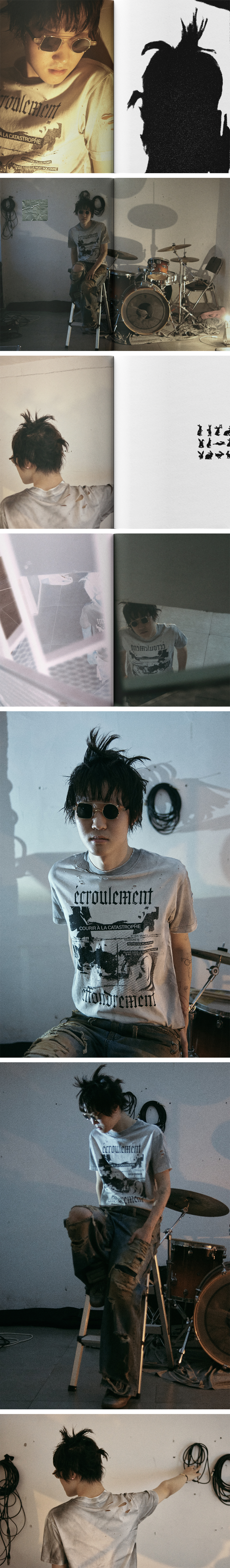 선데이오프클럽 이쿠리머 핸드 디스트레스드 티셔츠 블랙