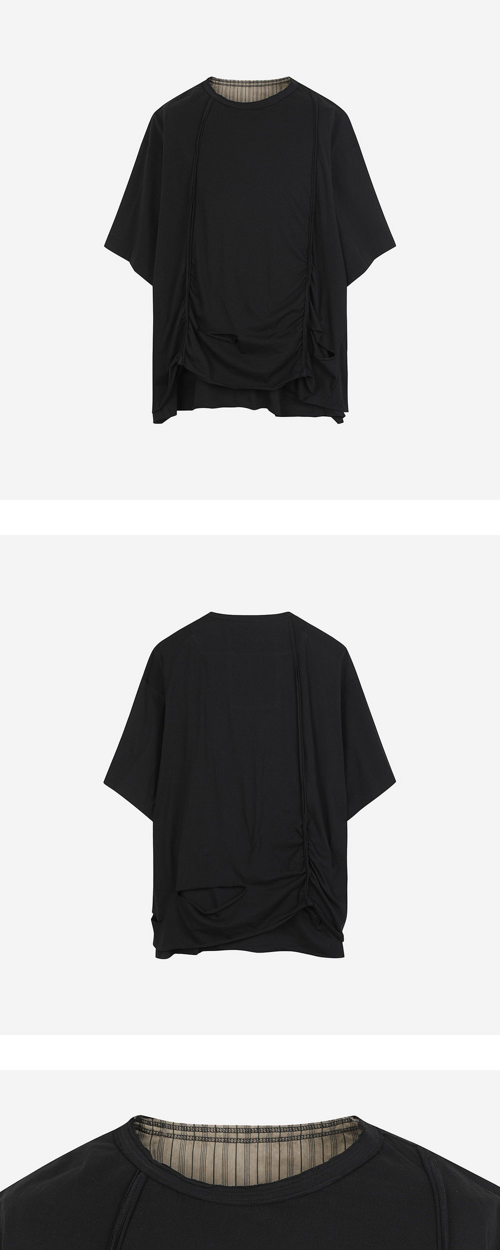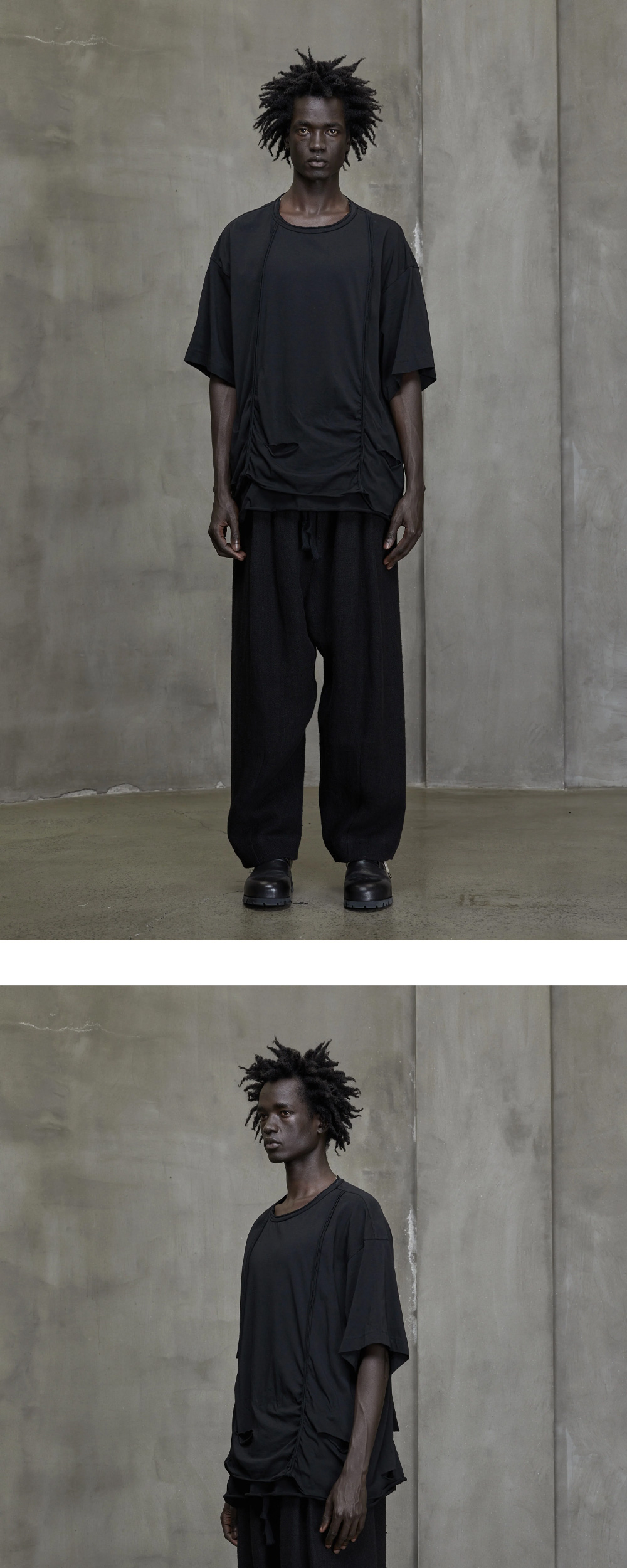 지기첸 디스트로이드 레이어 티셔츠 블랙 - 24FW
