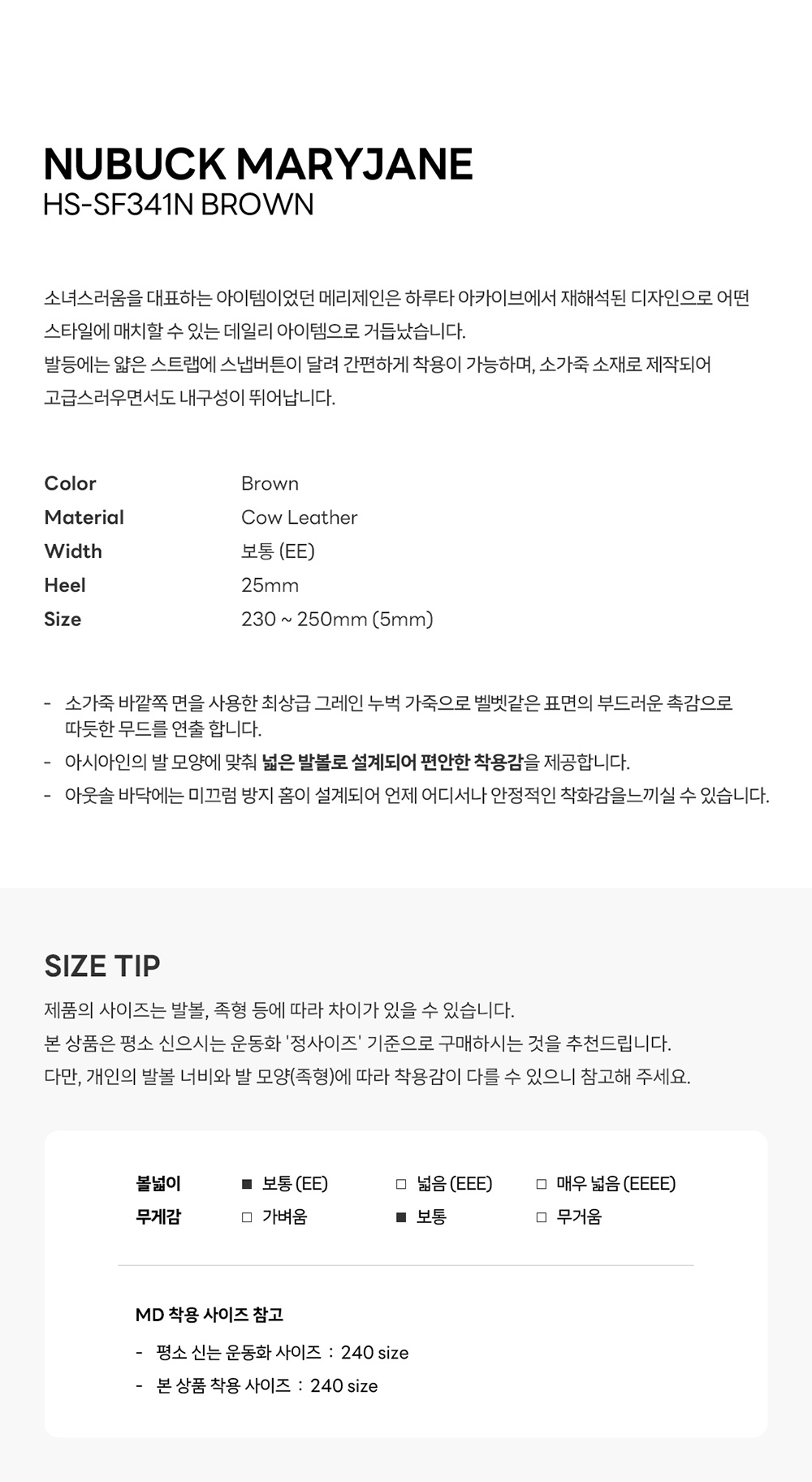 하루타 SF341 메리제인 누벅 브라운