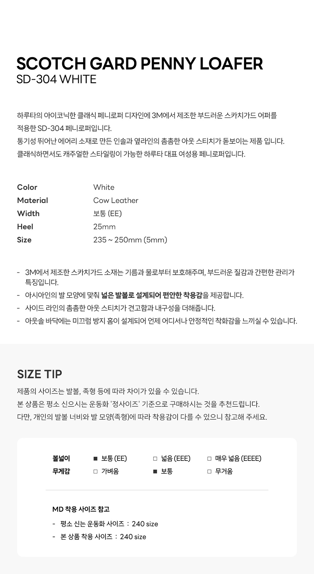 하루타 SD304 스코치가드 페니로퍼 화이트
