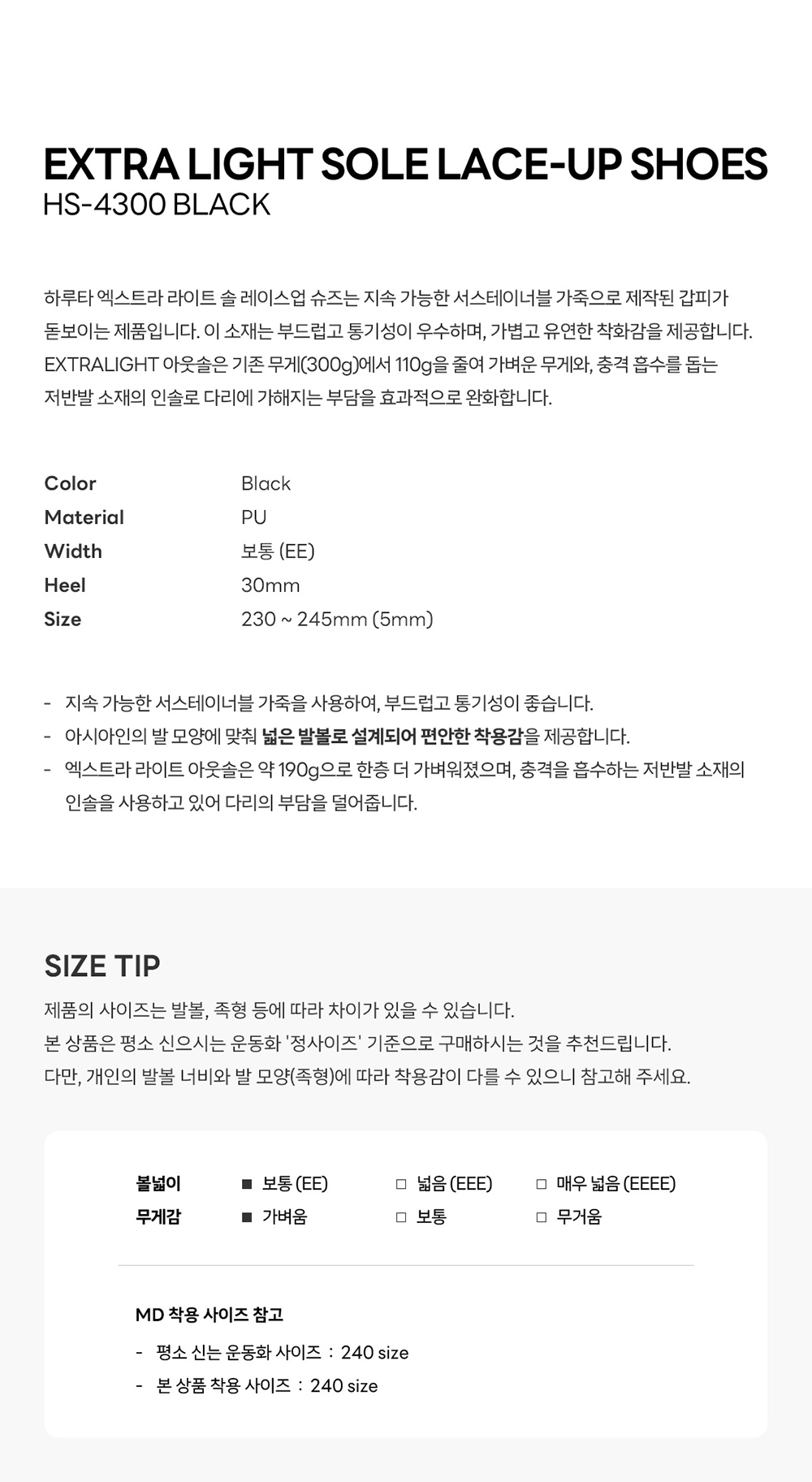 하루타 HS-4300 엑스트라 라이트솔 레이스업 슈즈 블랙