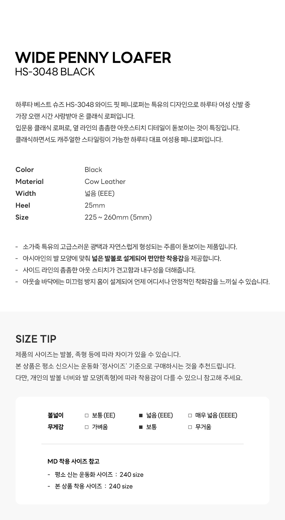하루타 HS-3048 와이드 페니로퍼 블랙