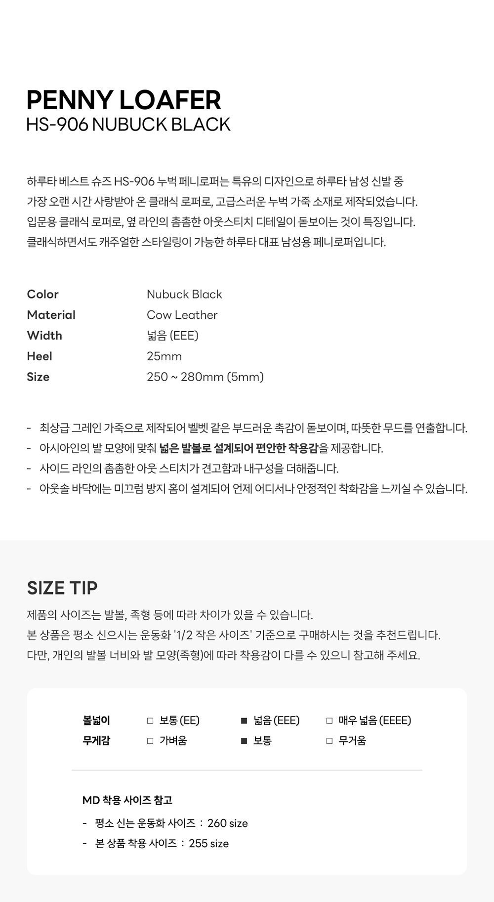 하루타 HS-906 페니로퍼 누벅 블랙