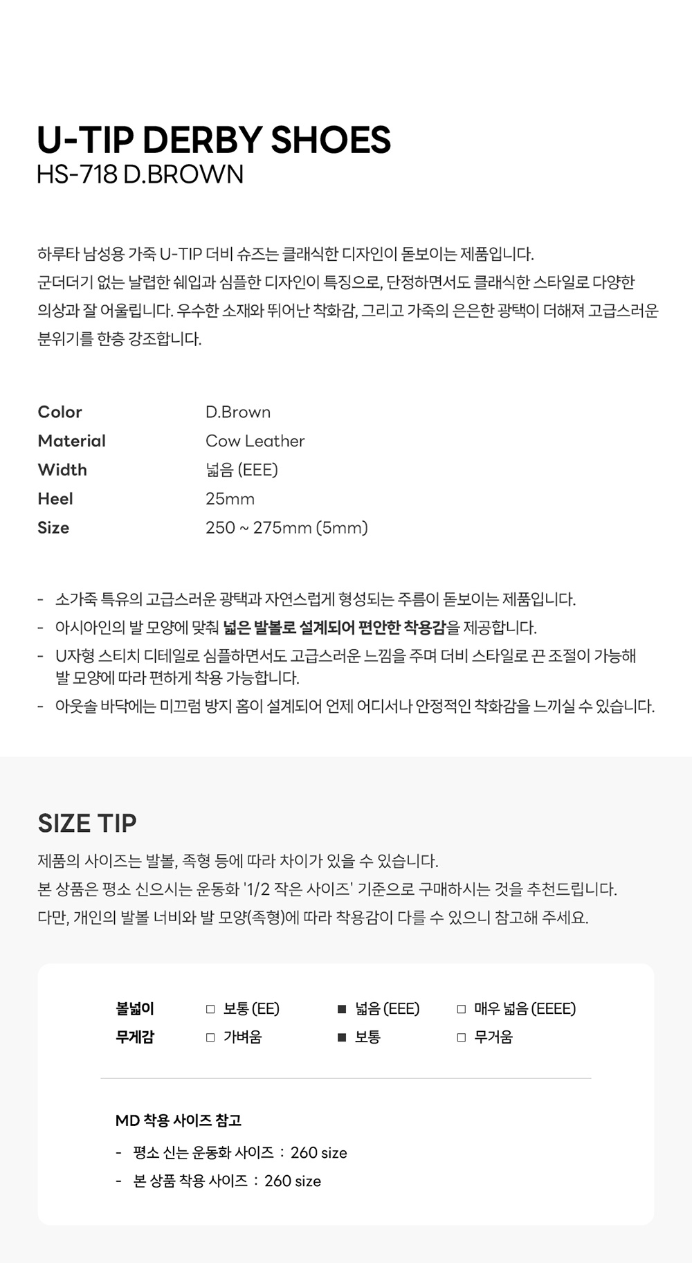 Haruta HS-718 U-Tip Derby Shoes D.Brown