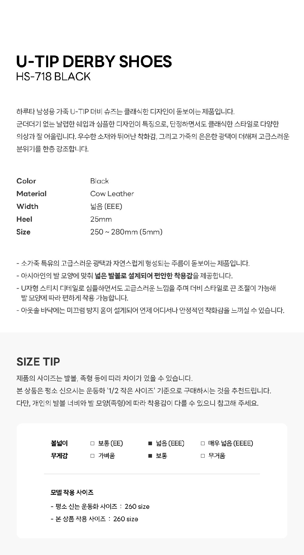 하루타 HS-718 U팁 더비슈즈 블랙
