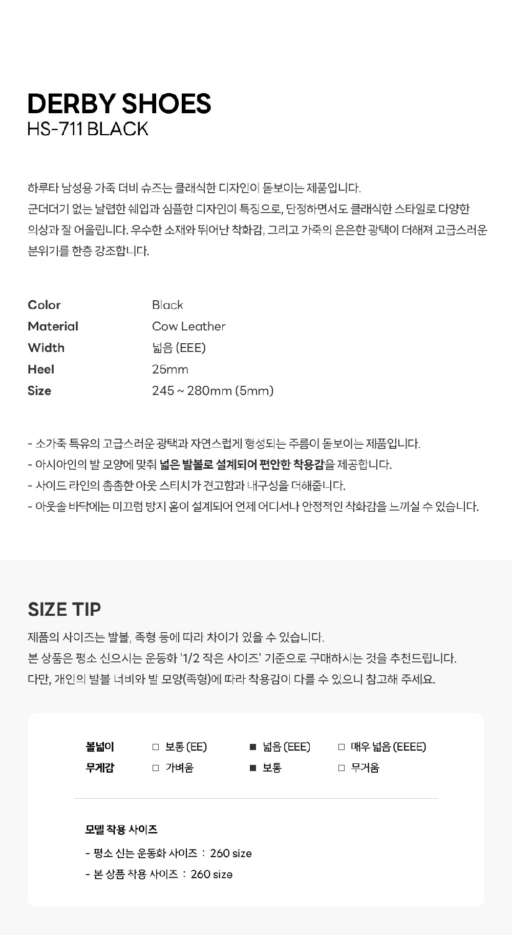 하루타 HS-711 더비슈즈 블랙