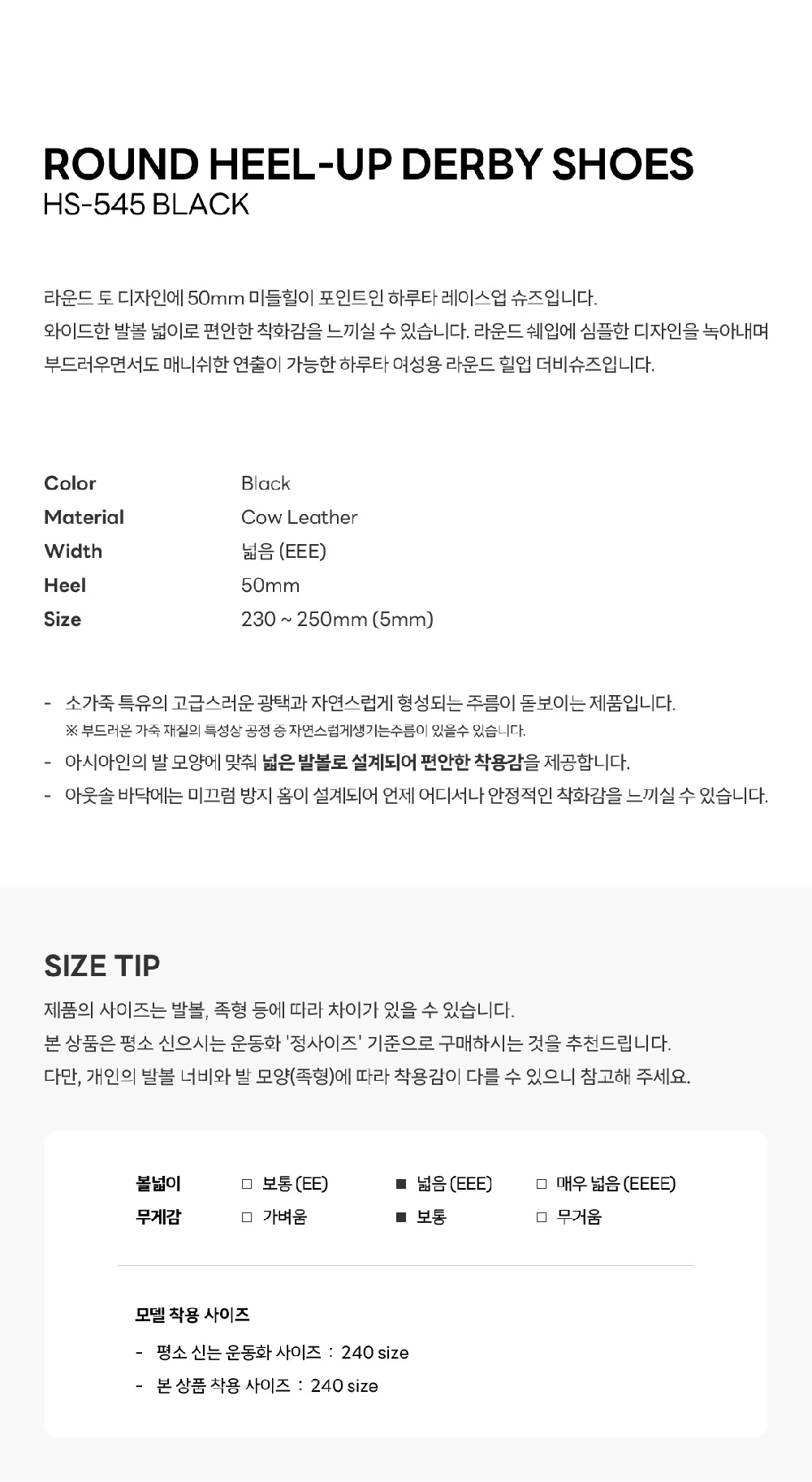 하루타 HS-571 라운드 힐업 더비슈즈 블랙