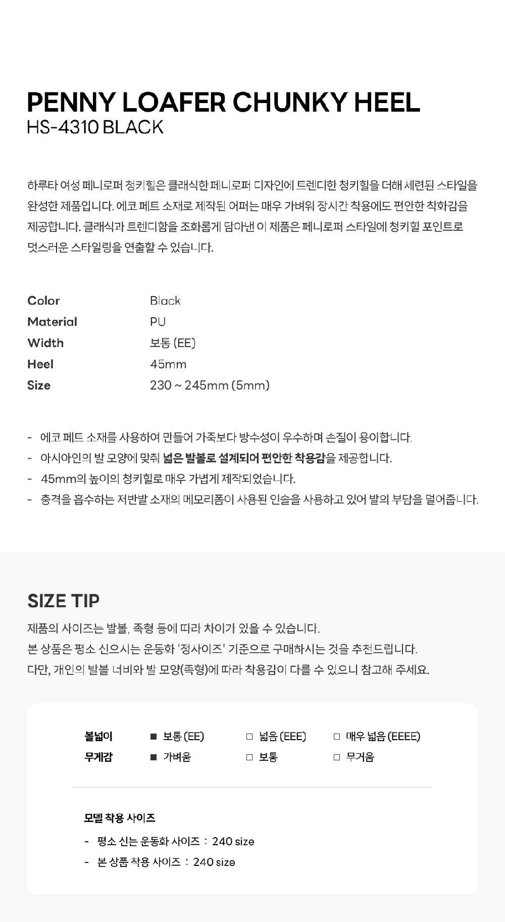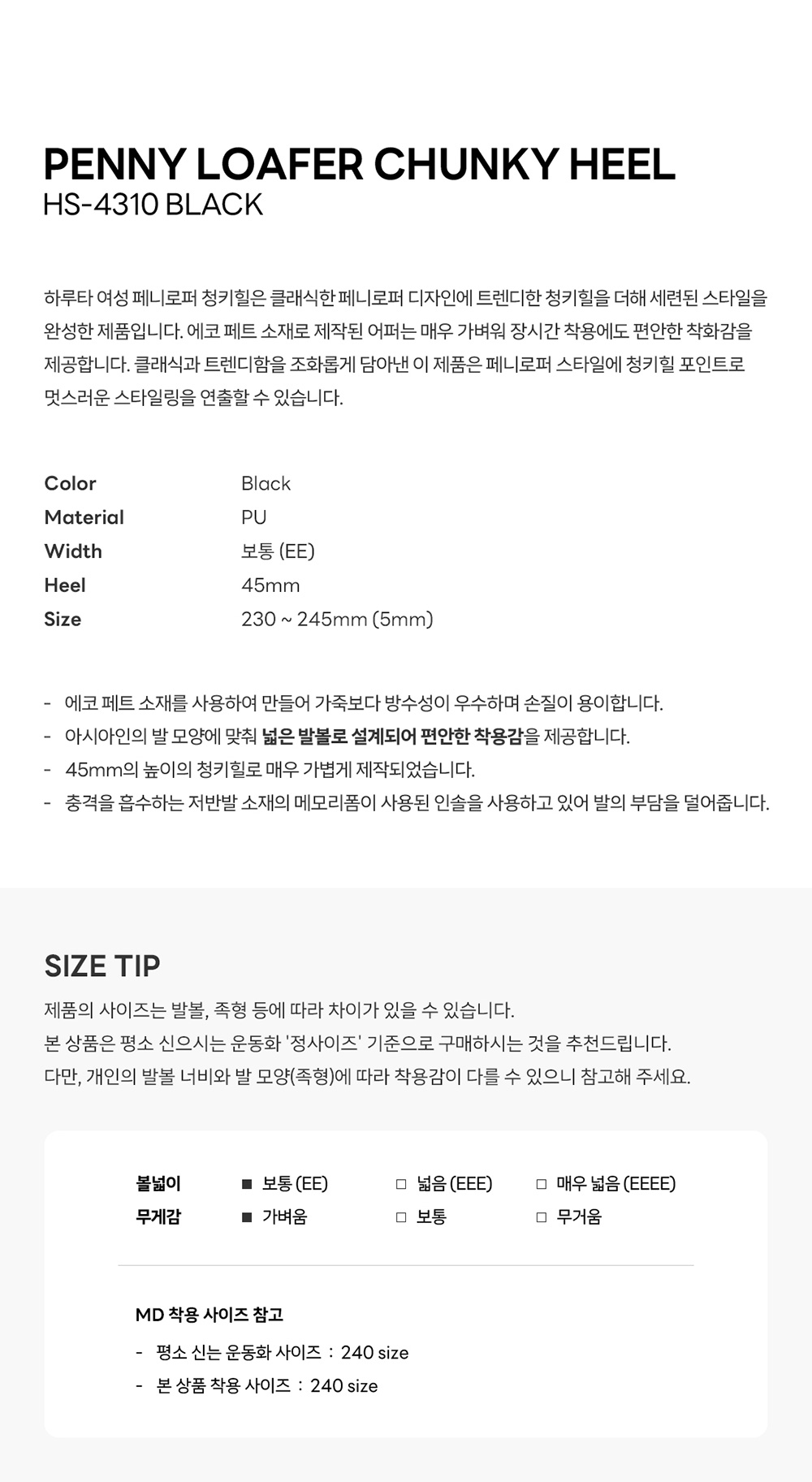 하루타 HS-4310 페니로퍼 청키힐 블랙