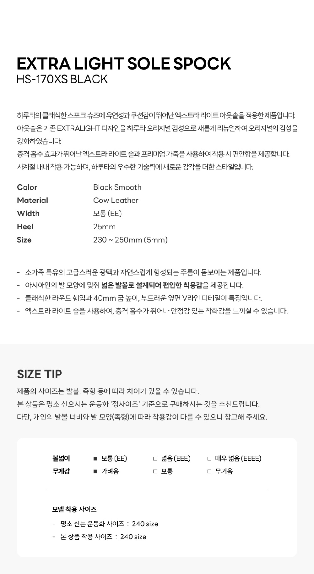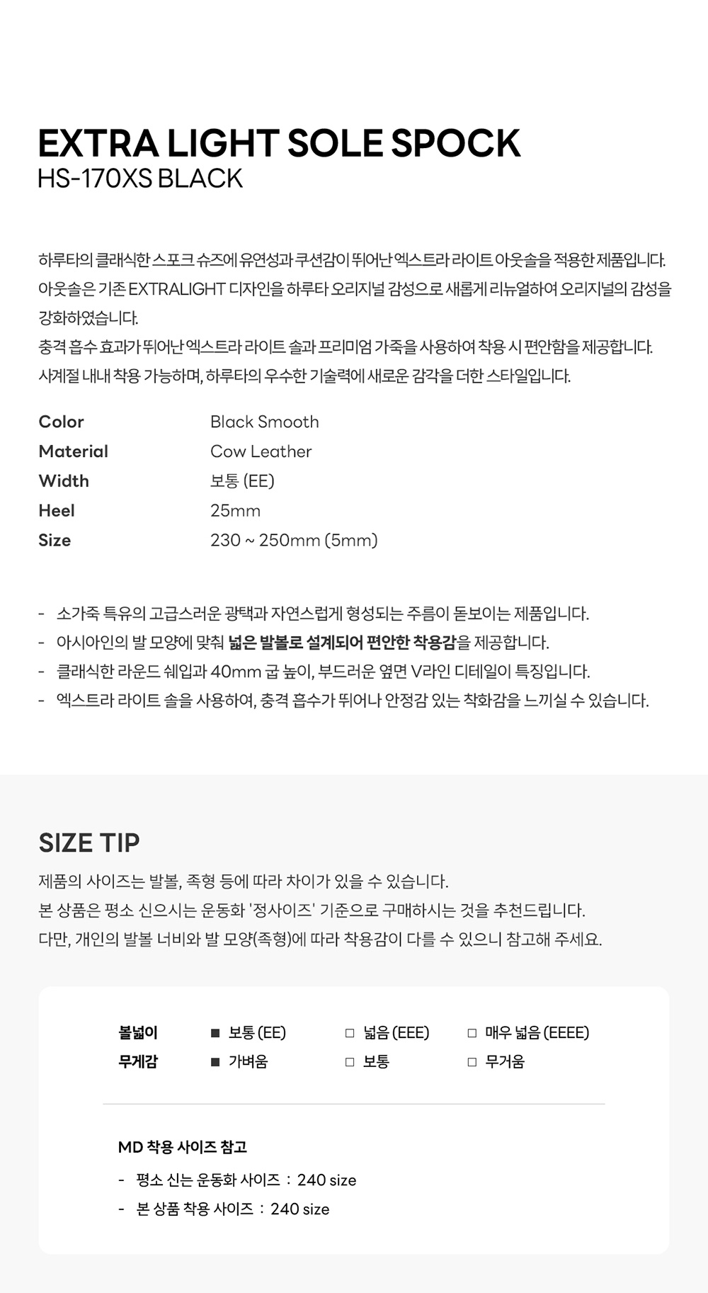 하루타 170XS 라이트솔 스포크 슈즈 블랙