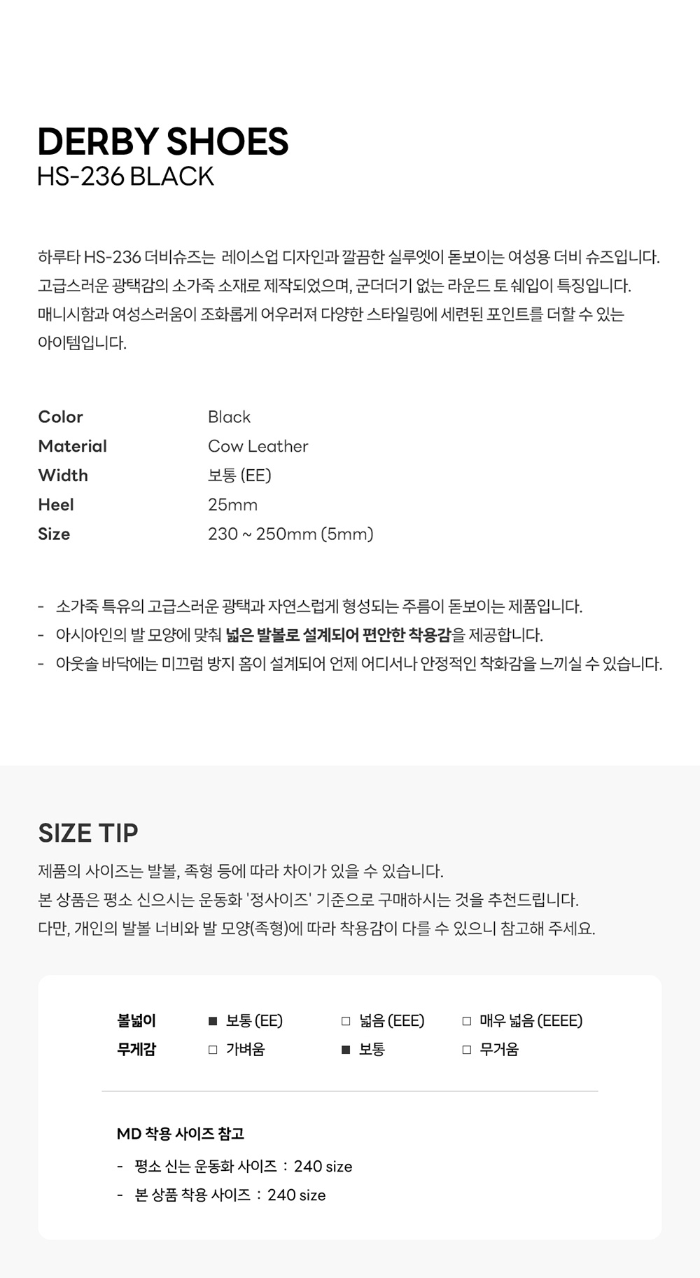 하루타 HS-236 더비슈즈 블랙