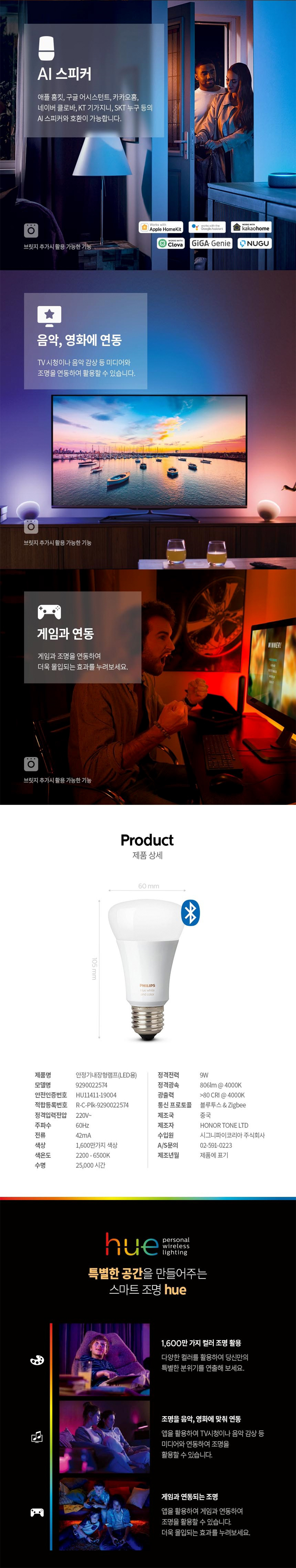 필립스 휴 컬러 앰비언스 800루멘 9W 전구