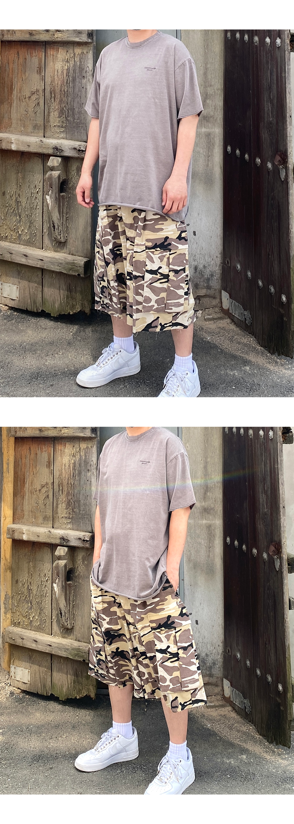 언더마이카 무.41 안티 Fxxking 로고 플레이 베이직 피그먼트 티셔츠 베이지