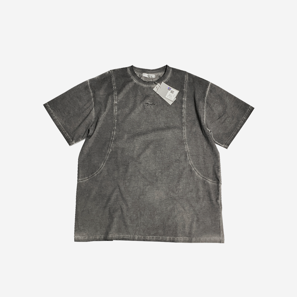 언더마이카 무.42 안티 Fxxking 로고 플레이 지오-라인 피그먼트 티셔츠 그레이