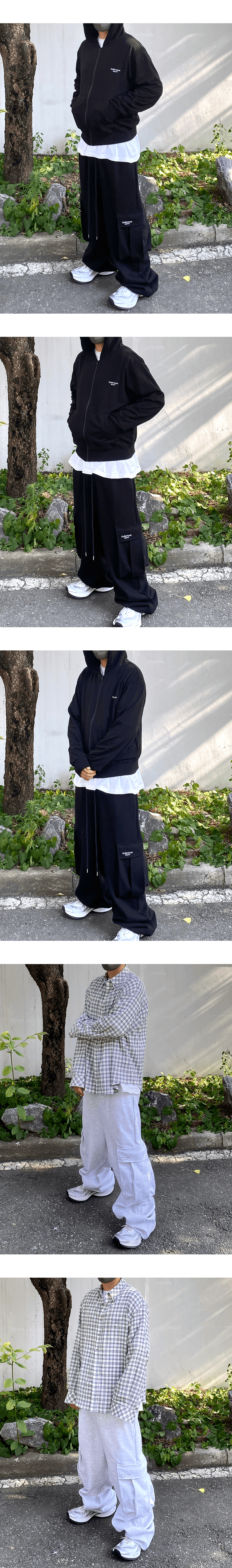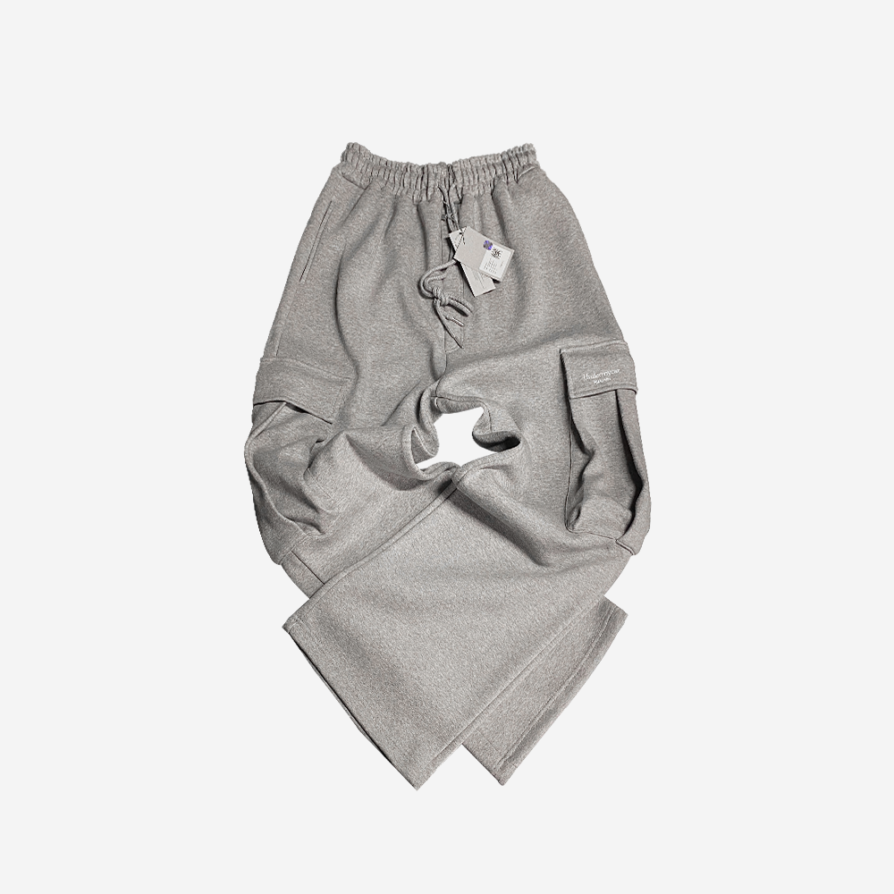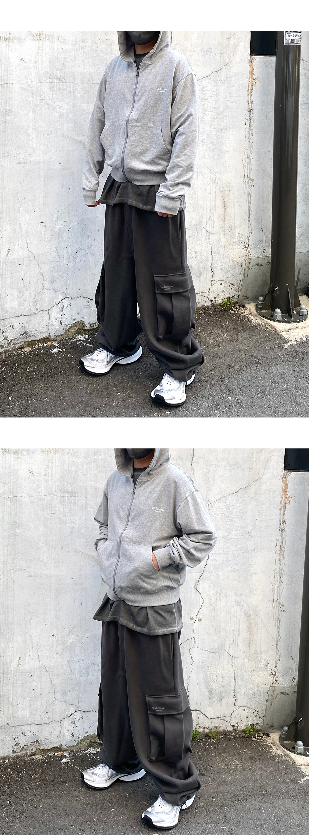 언더마이카 무.49 안티 Fxxking 로고 플레이 오버사이즈드 카고 스웻 팬츠 멜란지 그레이