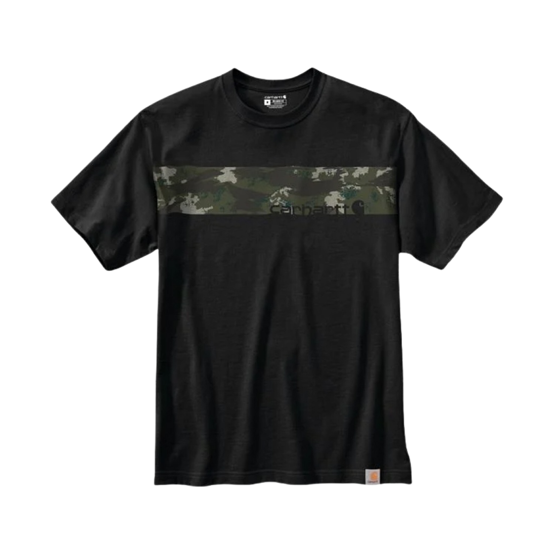 칼하트 릴렉스드 핏 헤비웨이트 숏슬리브 카모 로고 그래픽 티셔츠 블랙