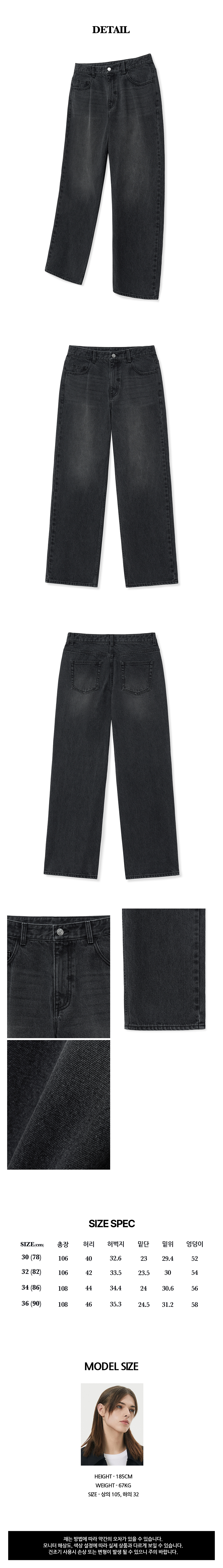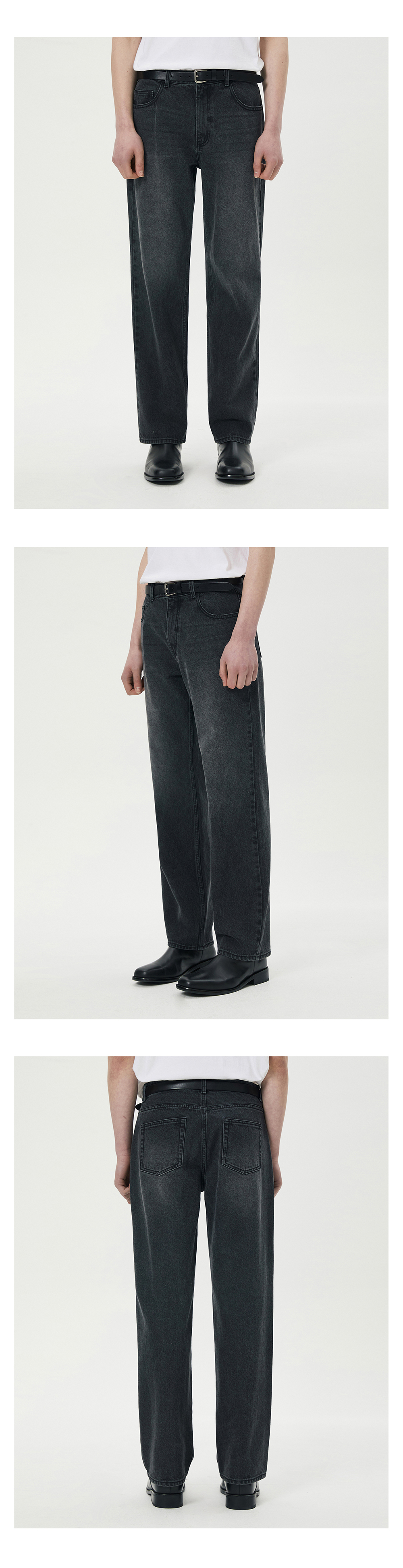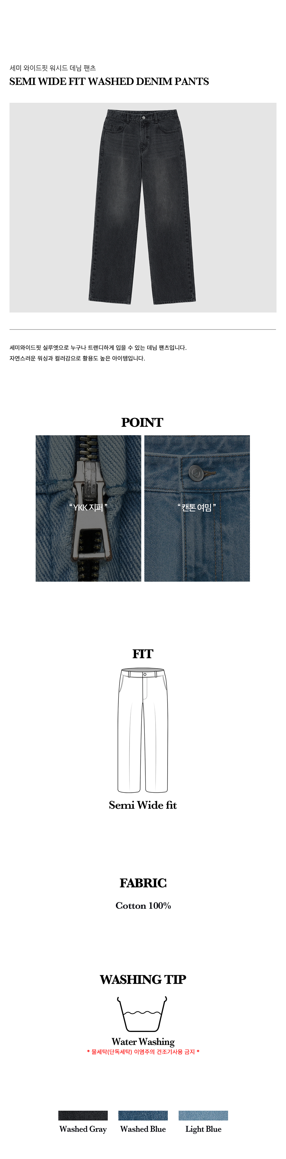 티엔지티 세미 와이드핏 워시드 데님 팬츠 워시드 그레이