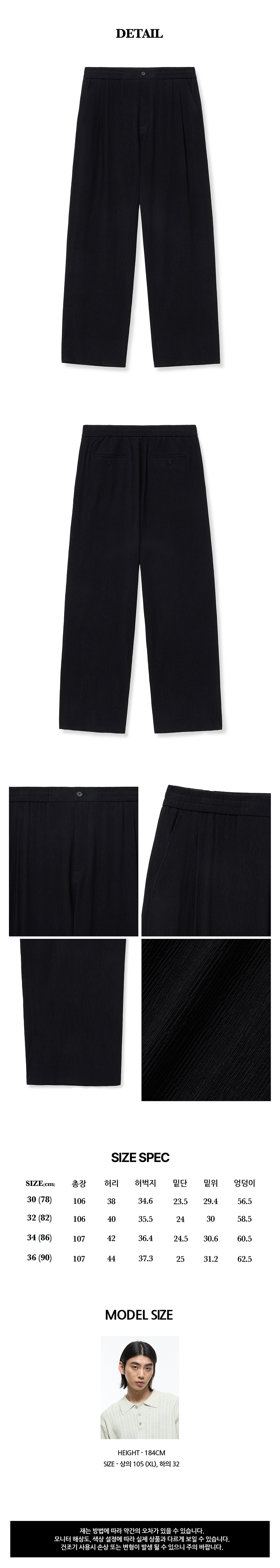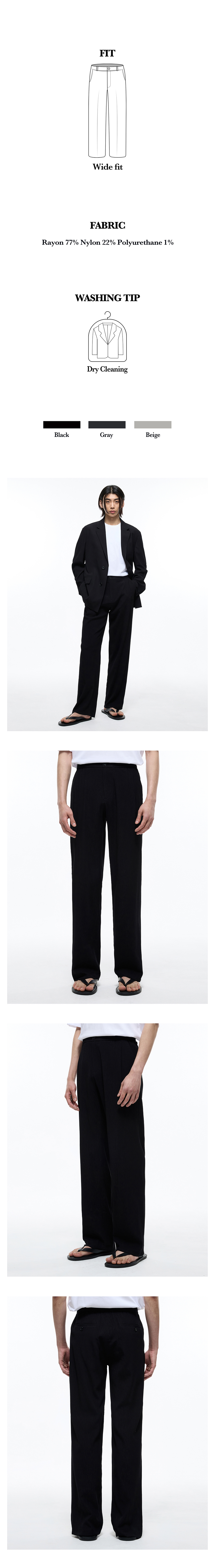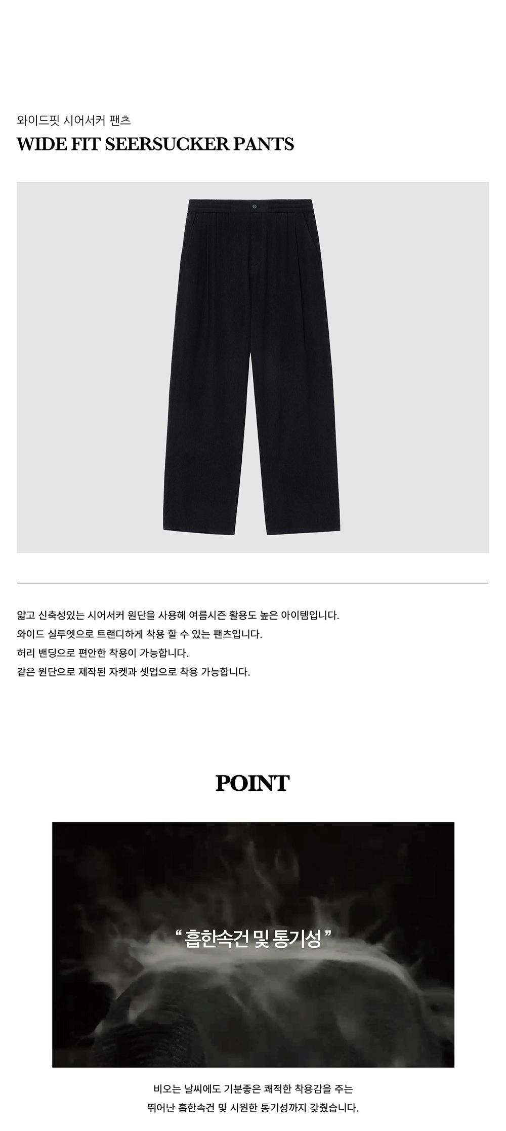티엔지티 키노시타 세미 와이드핏 시어서커 셋업 팬츠 블랙