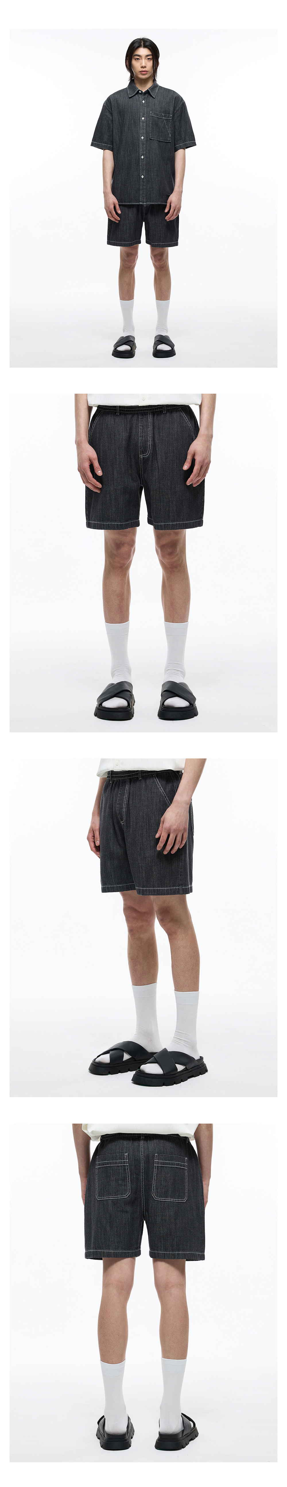 TNGT Lot.872H Wide-Fit Summer Easy Banding Denim Half Pants Washed Gray
