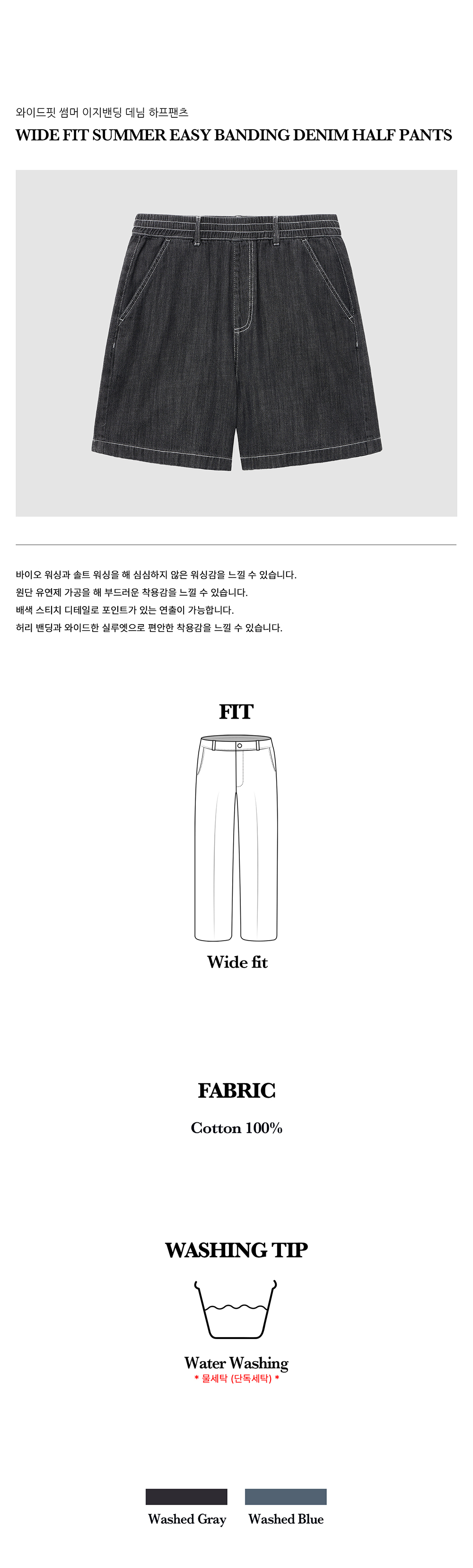 티엔지티 Lot.872H 와이드핏 서머 이지밴딩 데님 하프팬츠 워시드 그레이