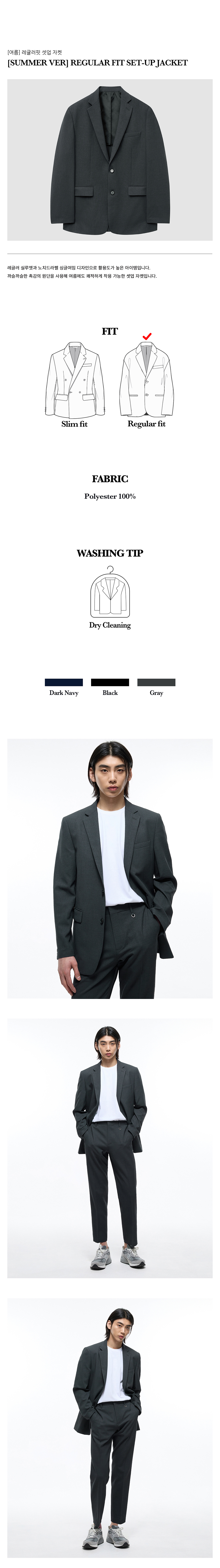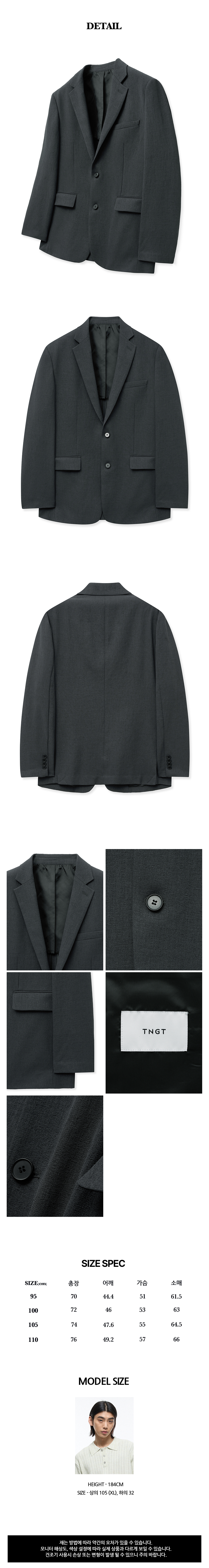 티엔지티 Summer Edit 레귤러핏 셋업 자켓 그레이