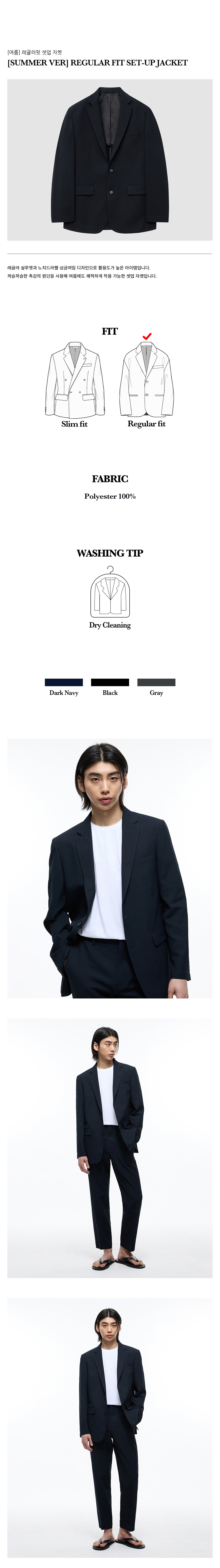 티엔지티 Summer Edit 레귤러핏 셋업 자켓 다크 네이비