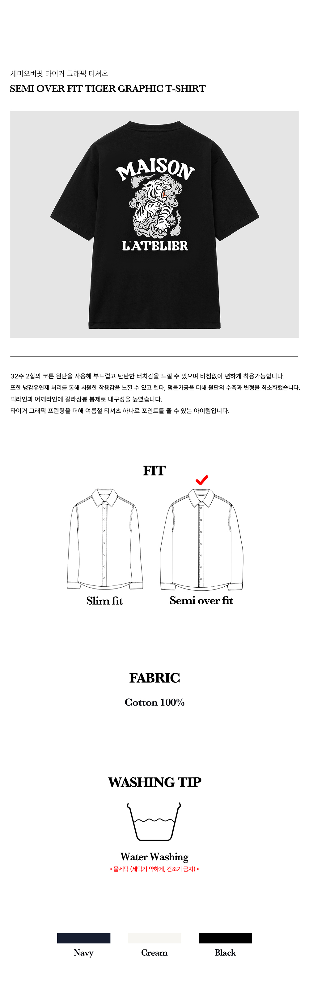 티엔지티 세미 오버핏 타이거 그래픽 티셔츠 블랙