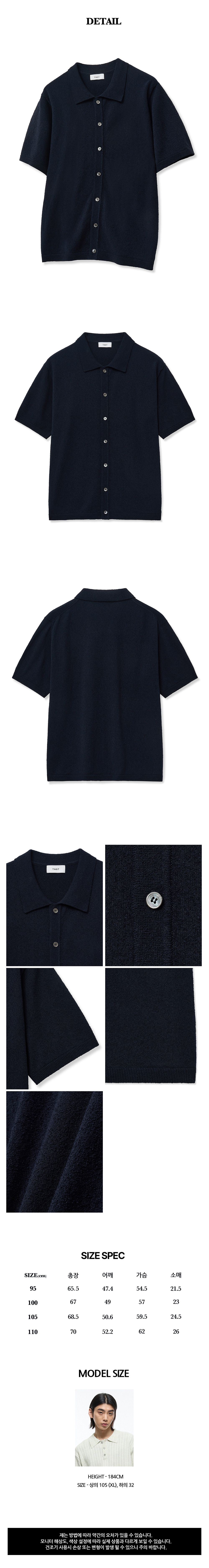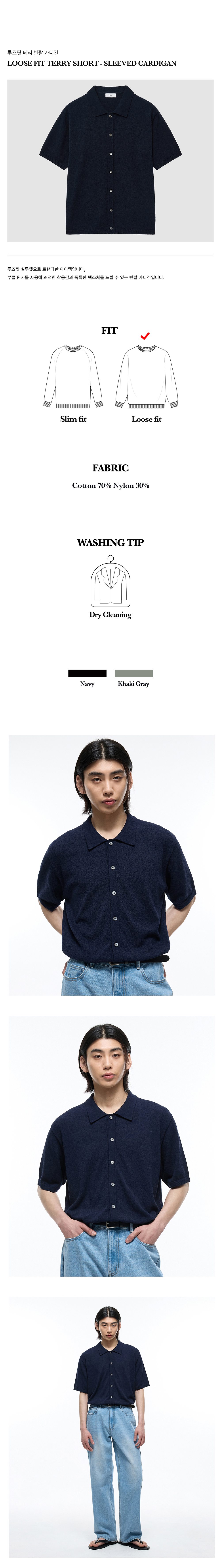 티엔지티 루즈핏 테리 반팔 가디건 네이비