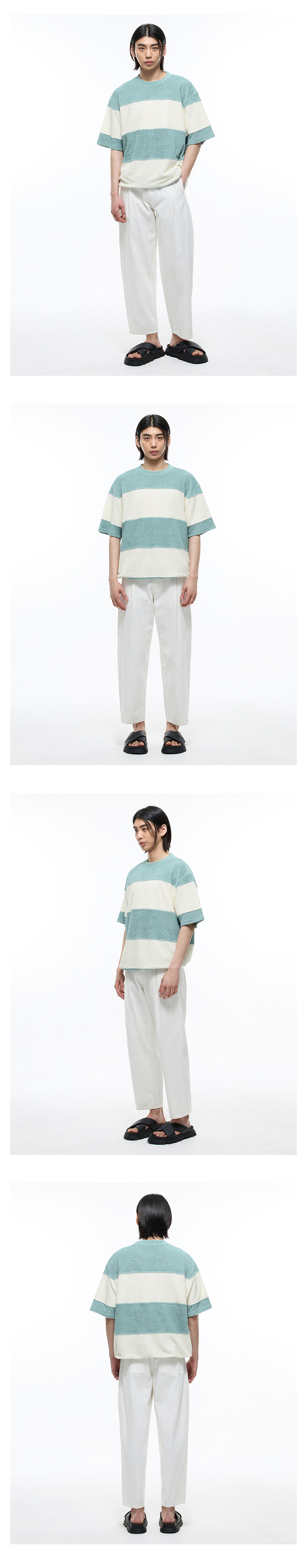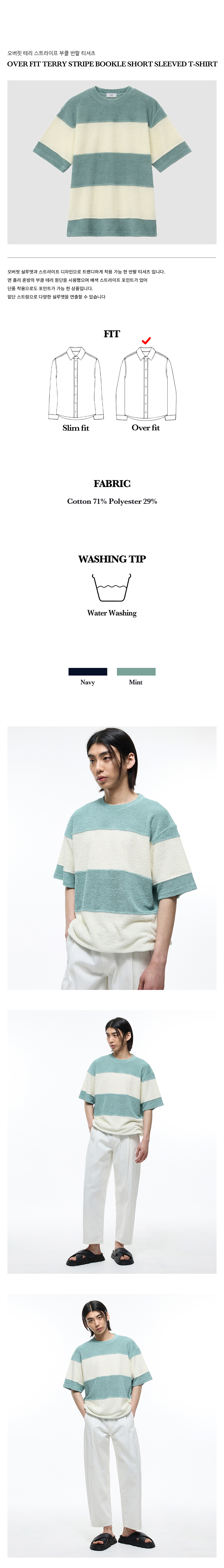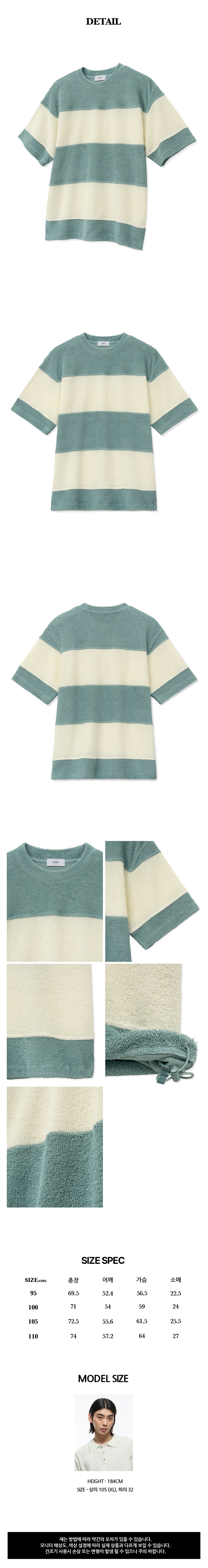 티엔지티 오버핏 테리 부클 스트라이프 반팔 티셔츠 민트
