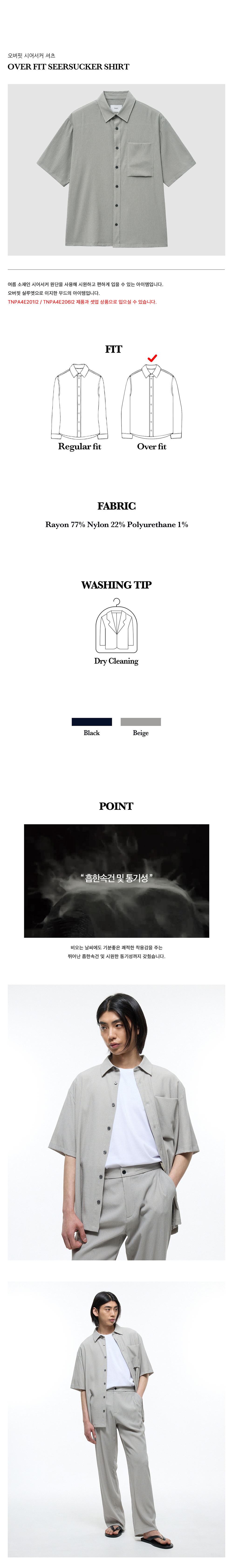 티엔지티 키노시타 오버핏 시어서커 셔츠 베이지