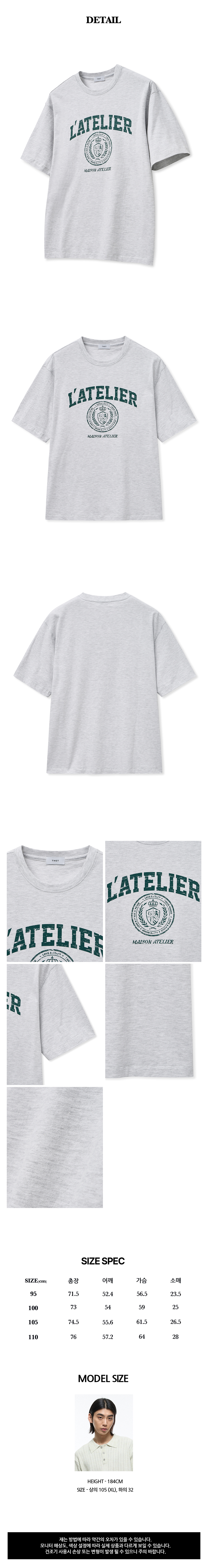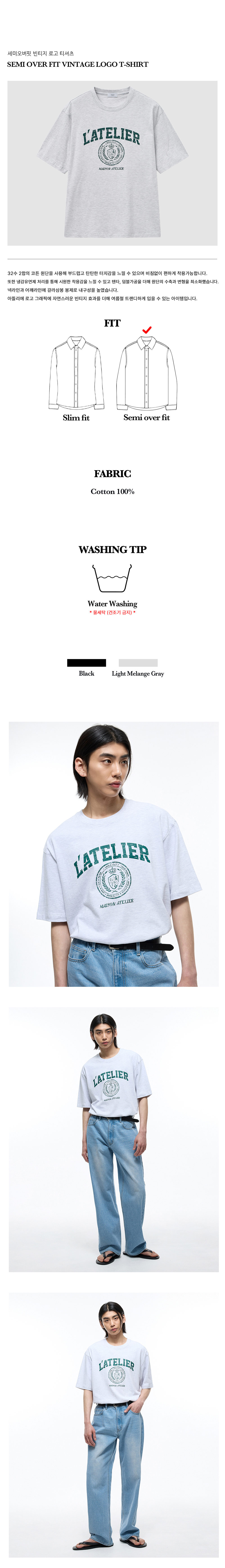 티엔지티 세미 오버핏 빈티지 로고 티셔츠 라이트 멜란지 그레이