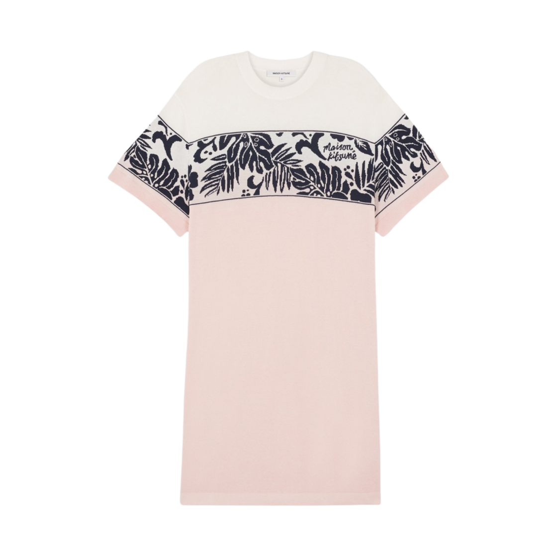(W) Maison Kitsune Tropical Band Jacquard Knit Dress Mist Pink
