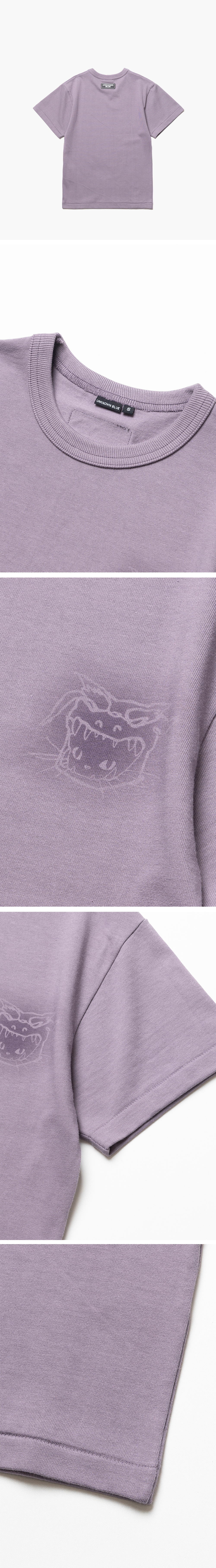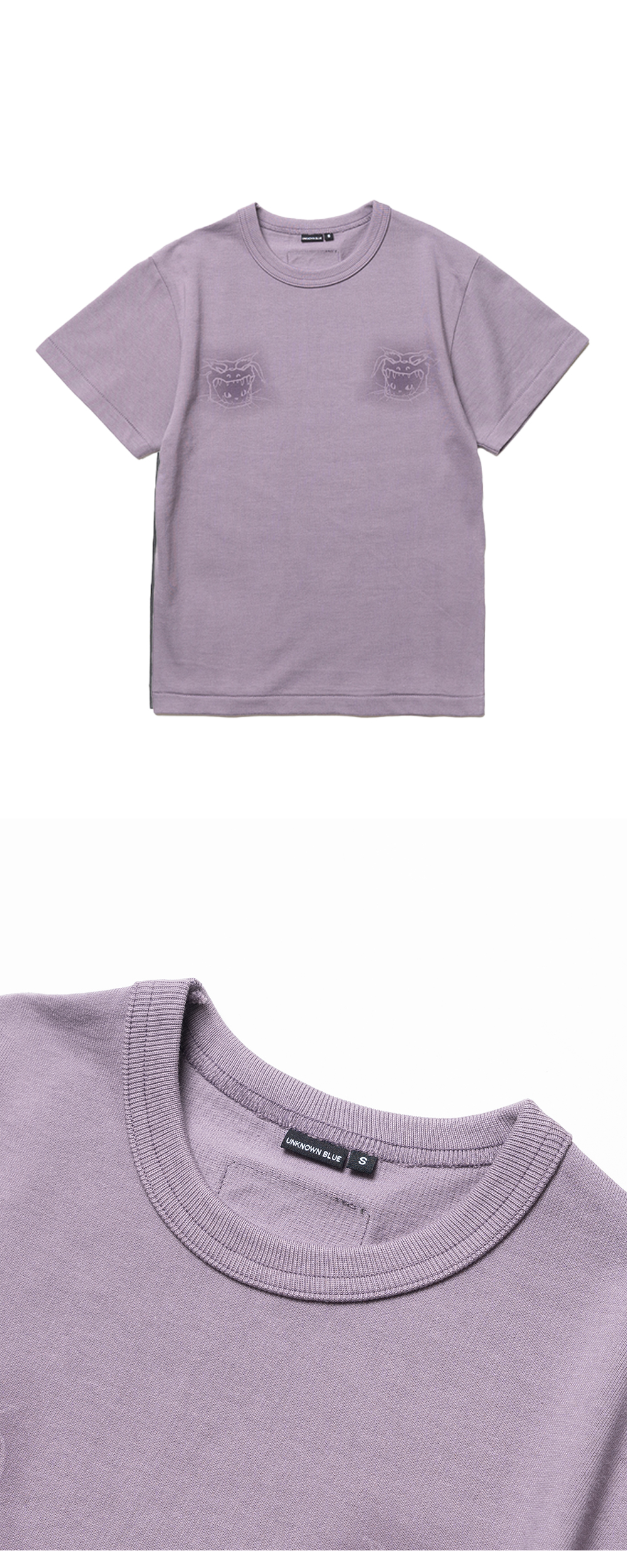 언노운 블루 시그니처인 용냥이가 프린트된 티셔츠입니다. 갑작스레 내리는 비에 젖어버린 티셔츠 위로 용의 탈을 쓴 고양이가 드러납니다. " 미야옹 "