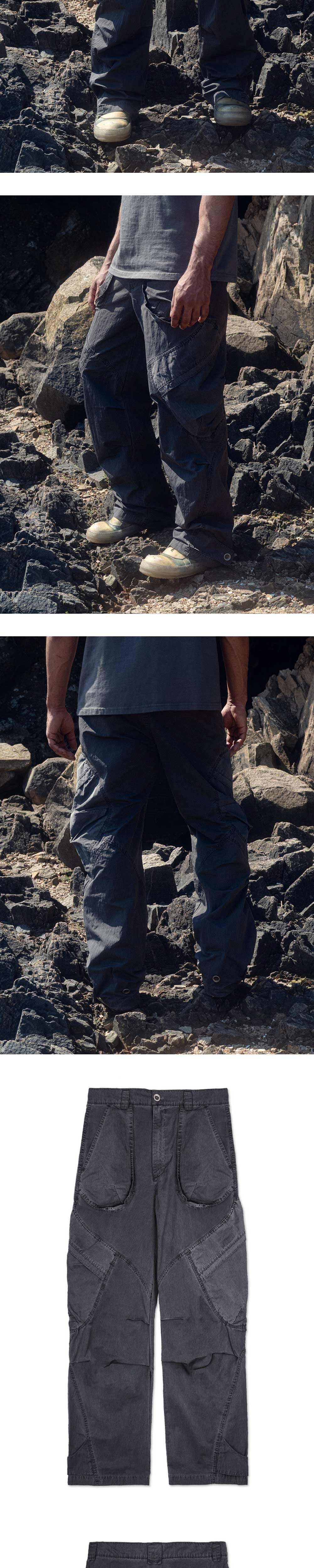 YKK ZIPPER GARMENTS DYEING TECHNIQUE FRONT TUCK DETAIL SIDE CARGO DESIGN BACK HEM ADJUST