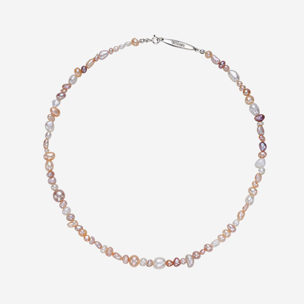 다양한 모양과 빛깔을 지닌 담수 진주로 제작된 목걸이입니다. 각각의 진주가 고유의 매력을 발산하며, 자연스러운 아름다움이 돋보입니다.