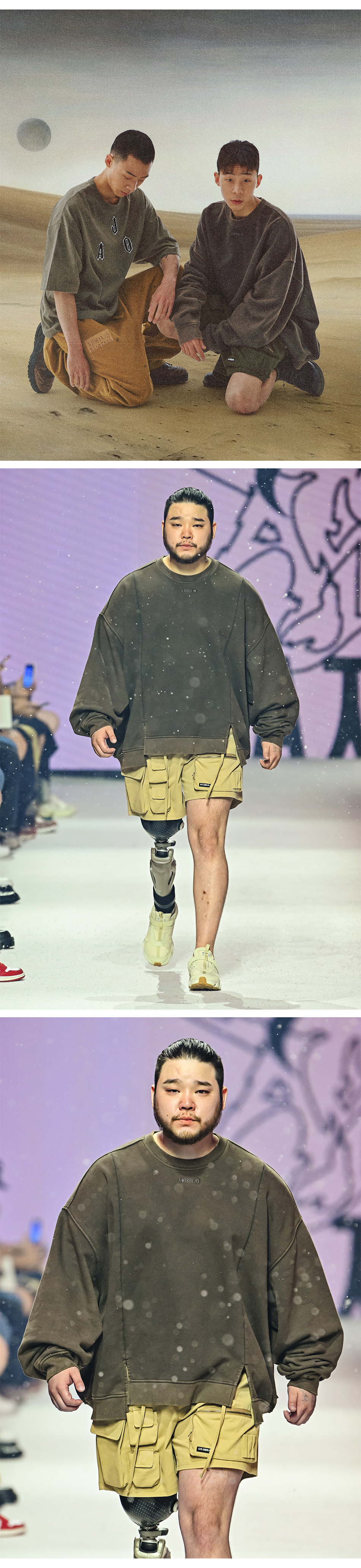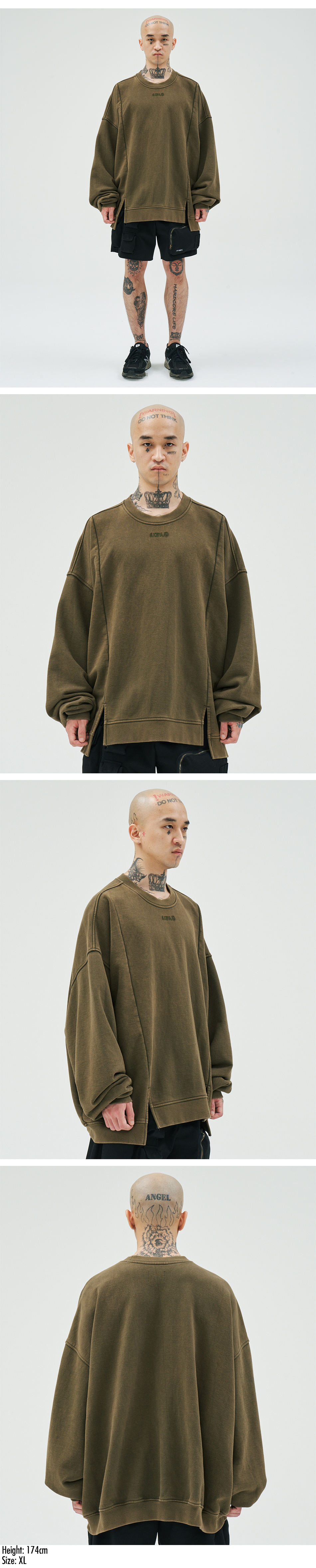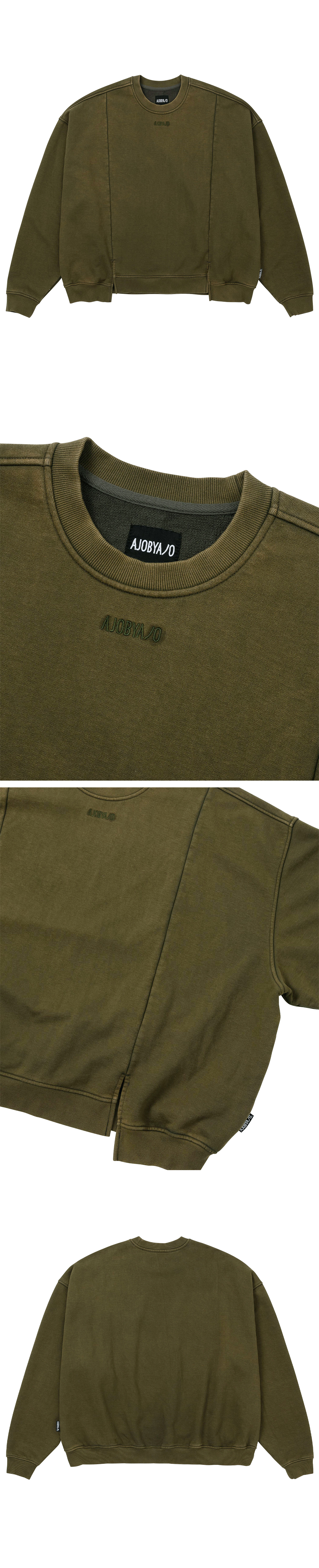 아조바이아조 투폴드 와이드 워시드 스웻셔츠 카키