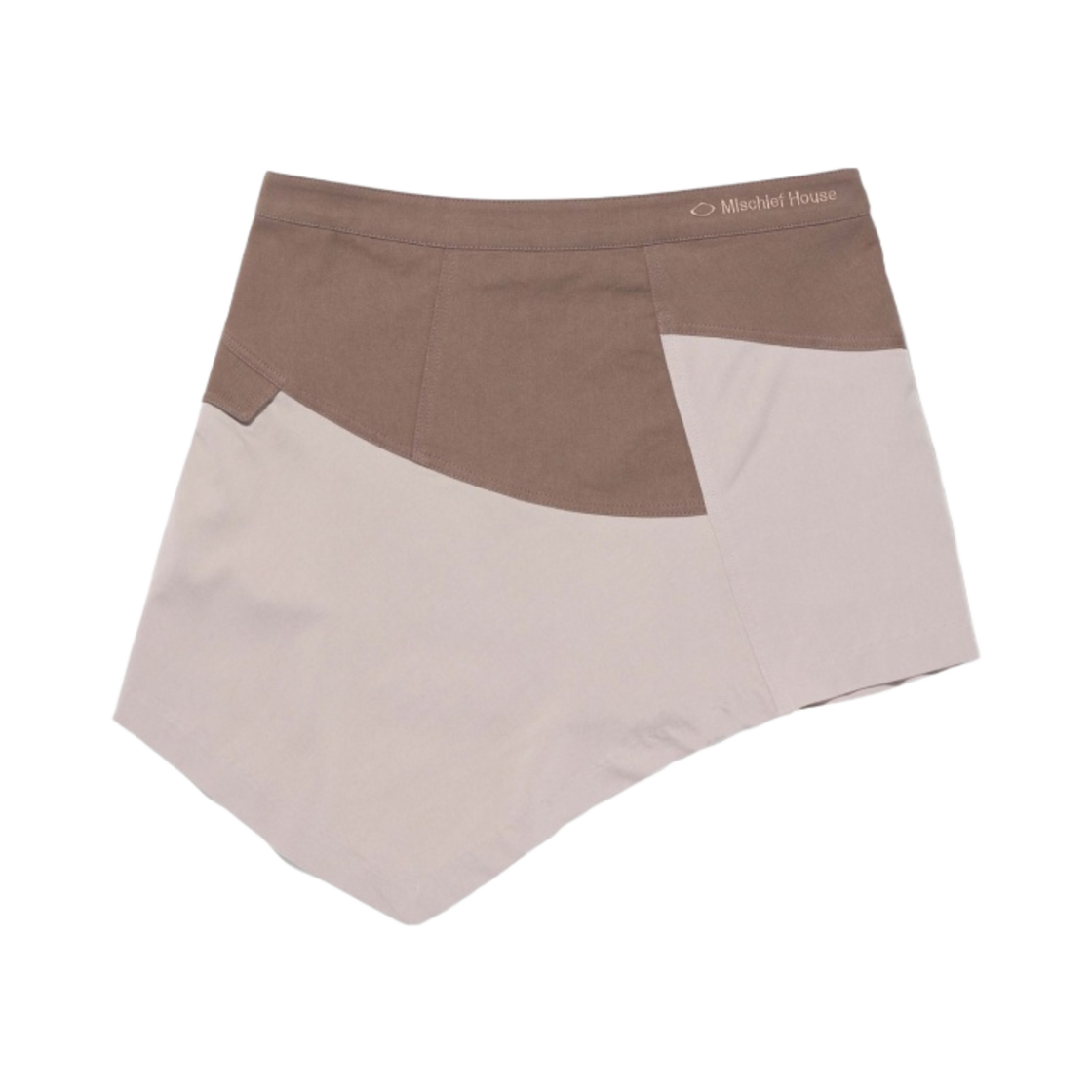 (W) Mischief Asymmetric Two-Tone Mini Skirt Mocha Beige