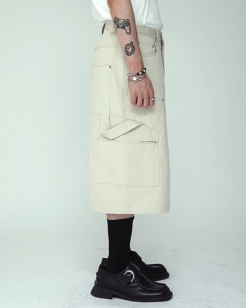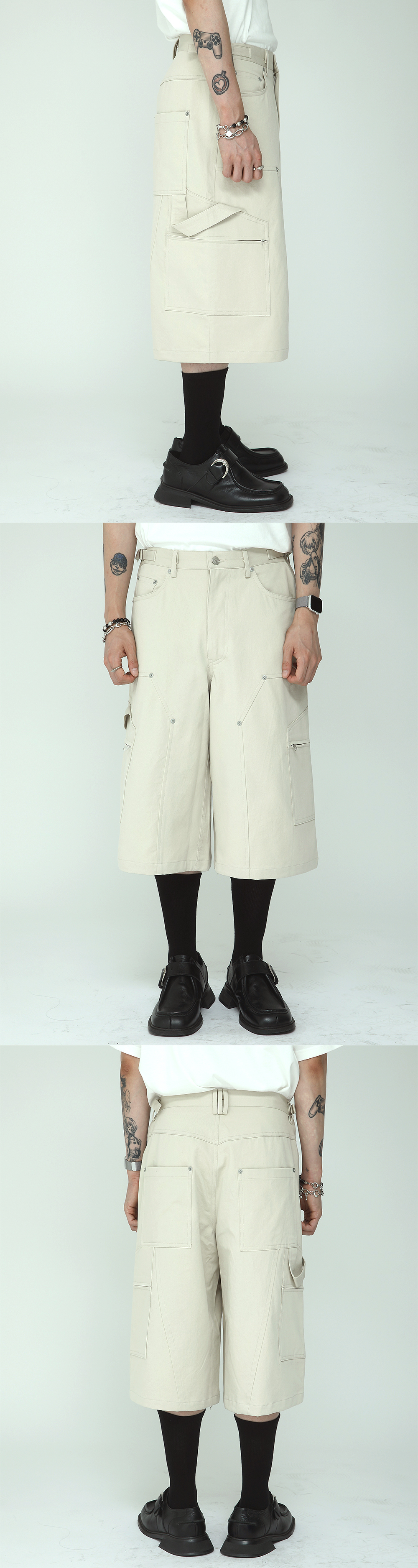 Haleine Carpenter Cargo Bermuda Shorts Cream Beige (VB209)